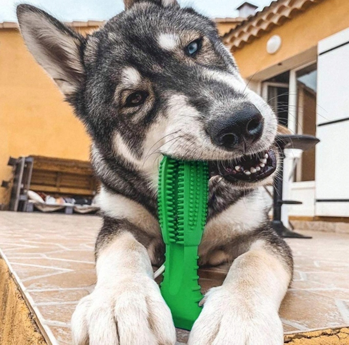 - Іграшка масажує ясна виготовлені з гуми та пластику, ідеально підходять для зубів цуценят та собак будь-якої породи.