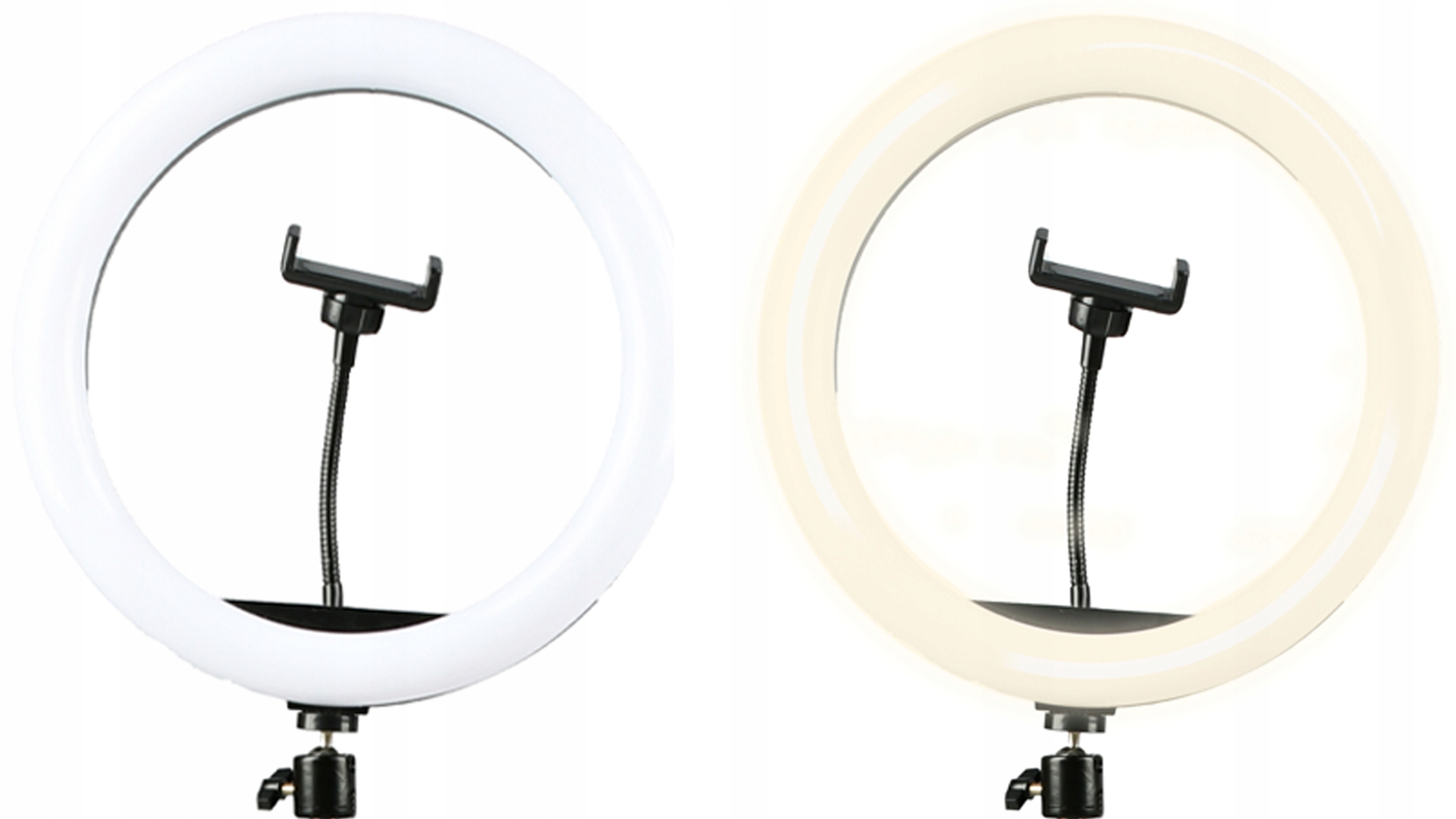 - 12" кільцева лампа зі 160 світлодіодами (80 холодних білих + 80 теплого білого)\