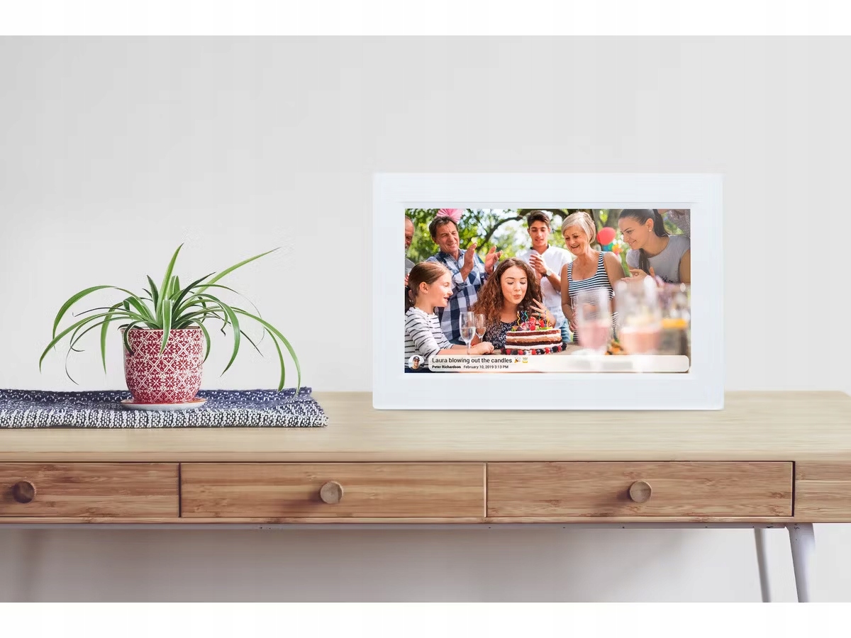 Рамка має діагональ 10,1 дюйма та 8 ГБ пам’яті, тому у вас достатньо місця для тисяч фотографій. За допомогою програмного забезпечення Frameo ви можете персоналізувати налаштування та надсилати фотографії своїй родині.
