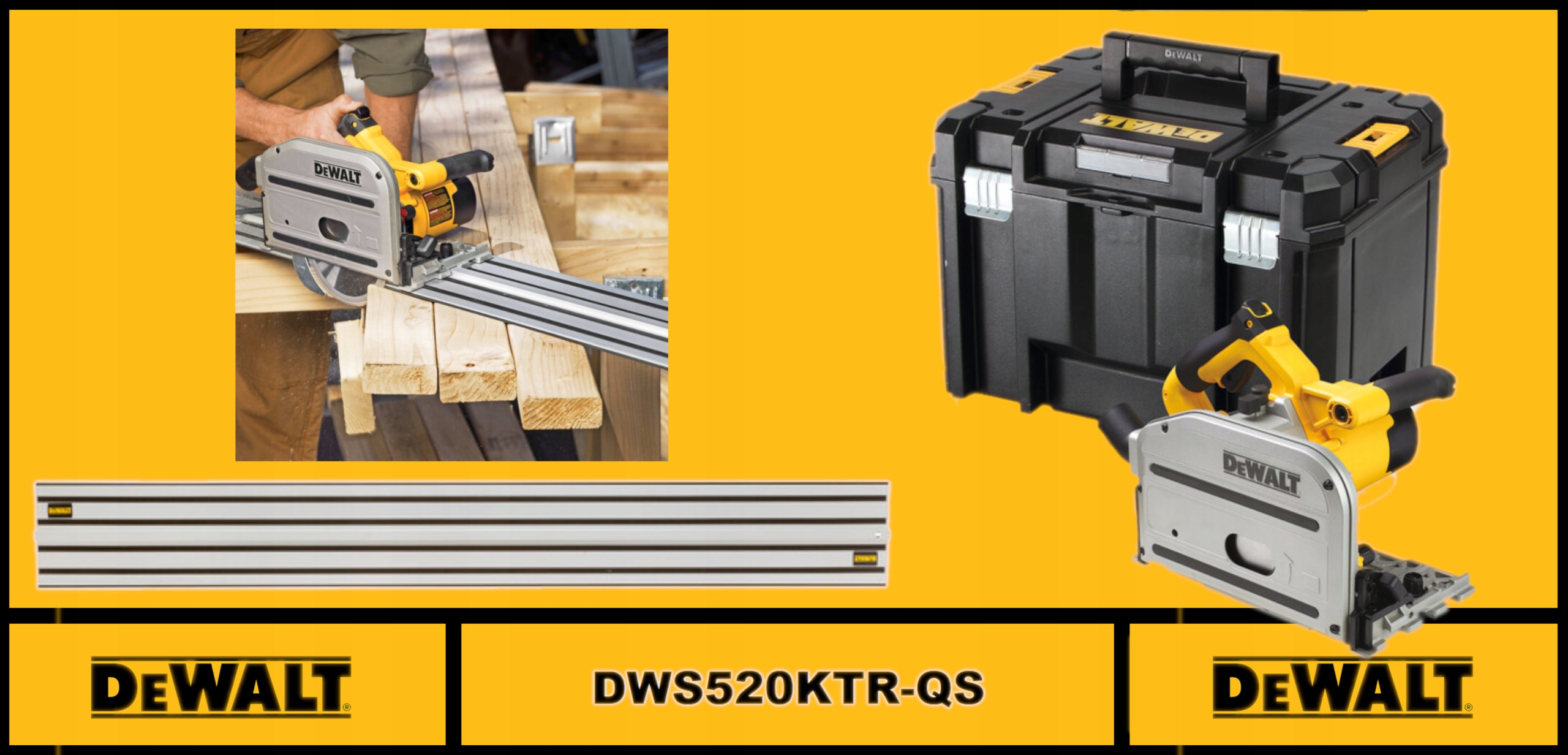Департамент Dewalt 55 мм 1300 Вт у багажнику TSTAK + залізниця 1,5 м DWS520KTR