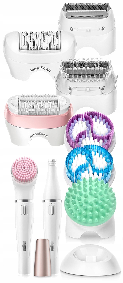 У набір входить функціональна підставка для зарядки, портативна косметичка. Додаткові аксесуари, такі як бритвена головка, тример і масажні насадки, а також три SPA-головки. Braun Face 2 in 1 з епілятором і щіткою забезпечує точне видалення волосся та очищення обличчя, що робить Silk-épil 9 Beauty повним набором для догляду.