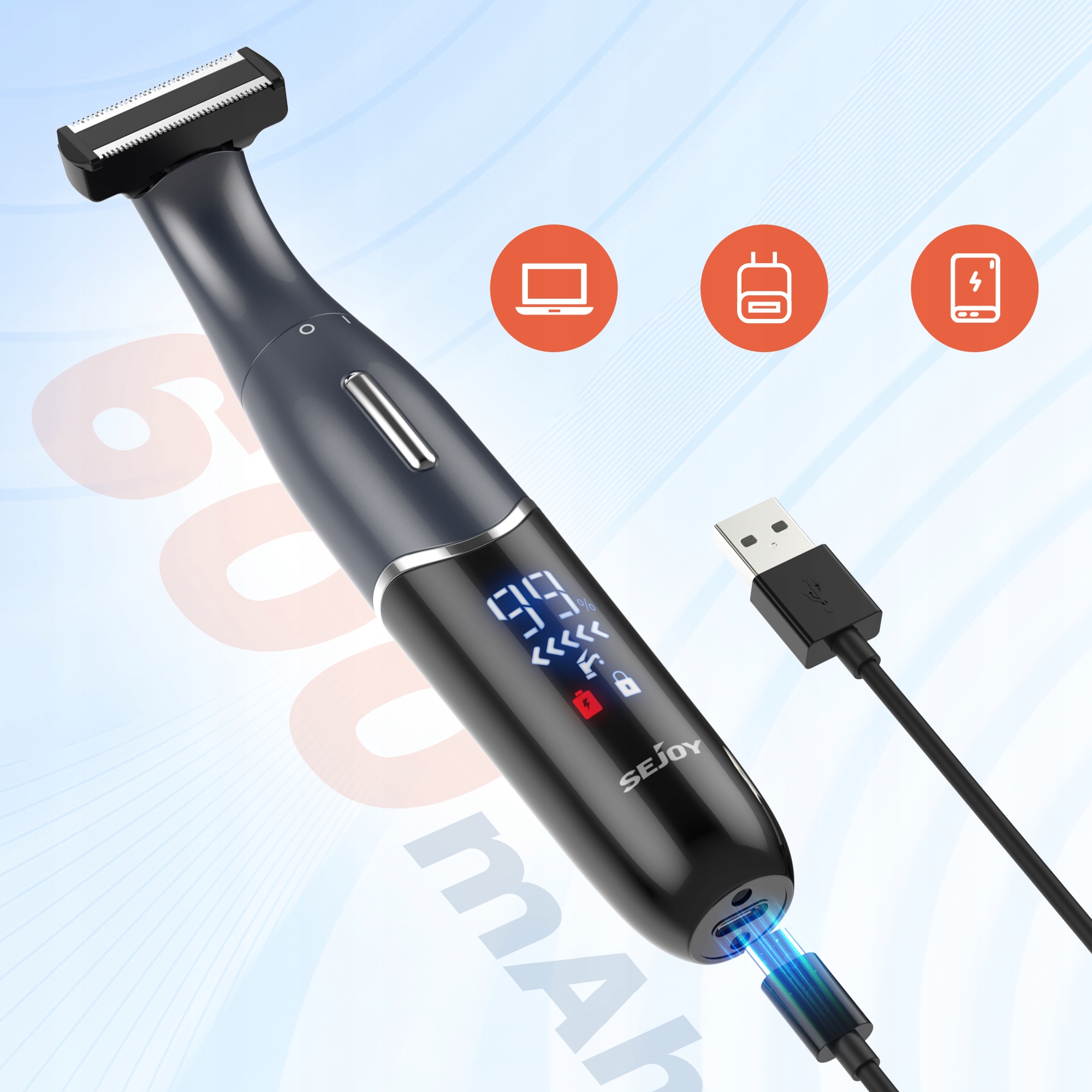 ✨ Цей пристрій має багатофункціональний світлодіодний дисплей із 3 функціями: відображення рівня заряду акумулятора в режимі реального часу та підказка про заряджання, підказка щодо очищення леза та режим блокування подорожей.