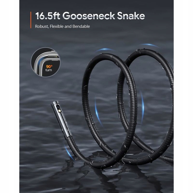 Інспекційна камера з записом SD-карт, трьома лінзами, 5-дюймовими IPS -дисплей, датчик 5 Мп, запис 1920p, діаметр зонда 9 мм, Гуса шиї, ліхтарик та 8 світлодіодів