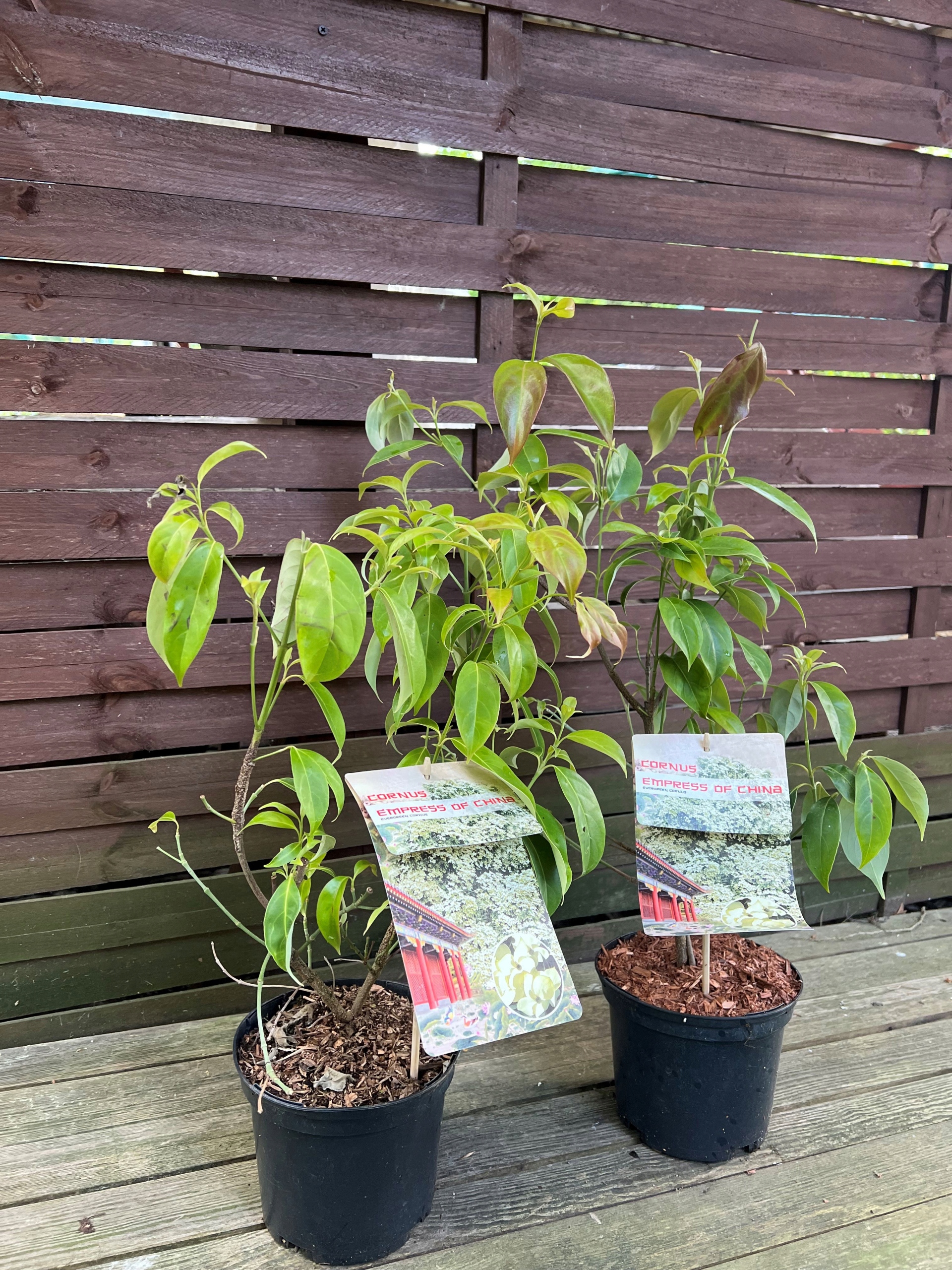 З травня по червень імператриця Корнус Ангустата з Китаю прикрашена безліччю бездоганних чотириразових квітів. Його клей поєднується з серцем, відтінок якого нагадує лимонне вапно. Під цим рясним суцвіттям його гілки м'яко згинаються, забезпечуючи цілий витончений порт. Листя Деренії імператриці Китаю стають фіолетовими, а потім коричневими, коли наближається зима. Досить довговічно, цей кит холодний до -10 С, але молоді рослини повинні бути покриті зимою.