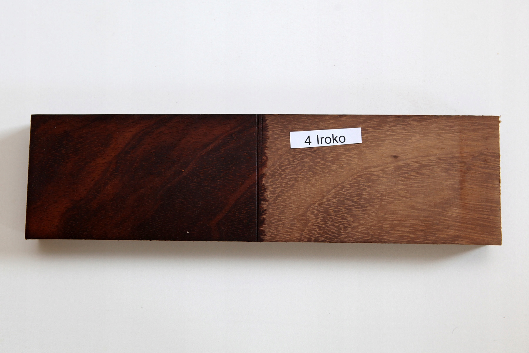 На фотографії нижче показано зразок товарів, що продаються, шматок деревини вгорі необроблений, шматок дерева внизу, половина вистругана, а друга половина вистругана та змащена маслом.