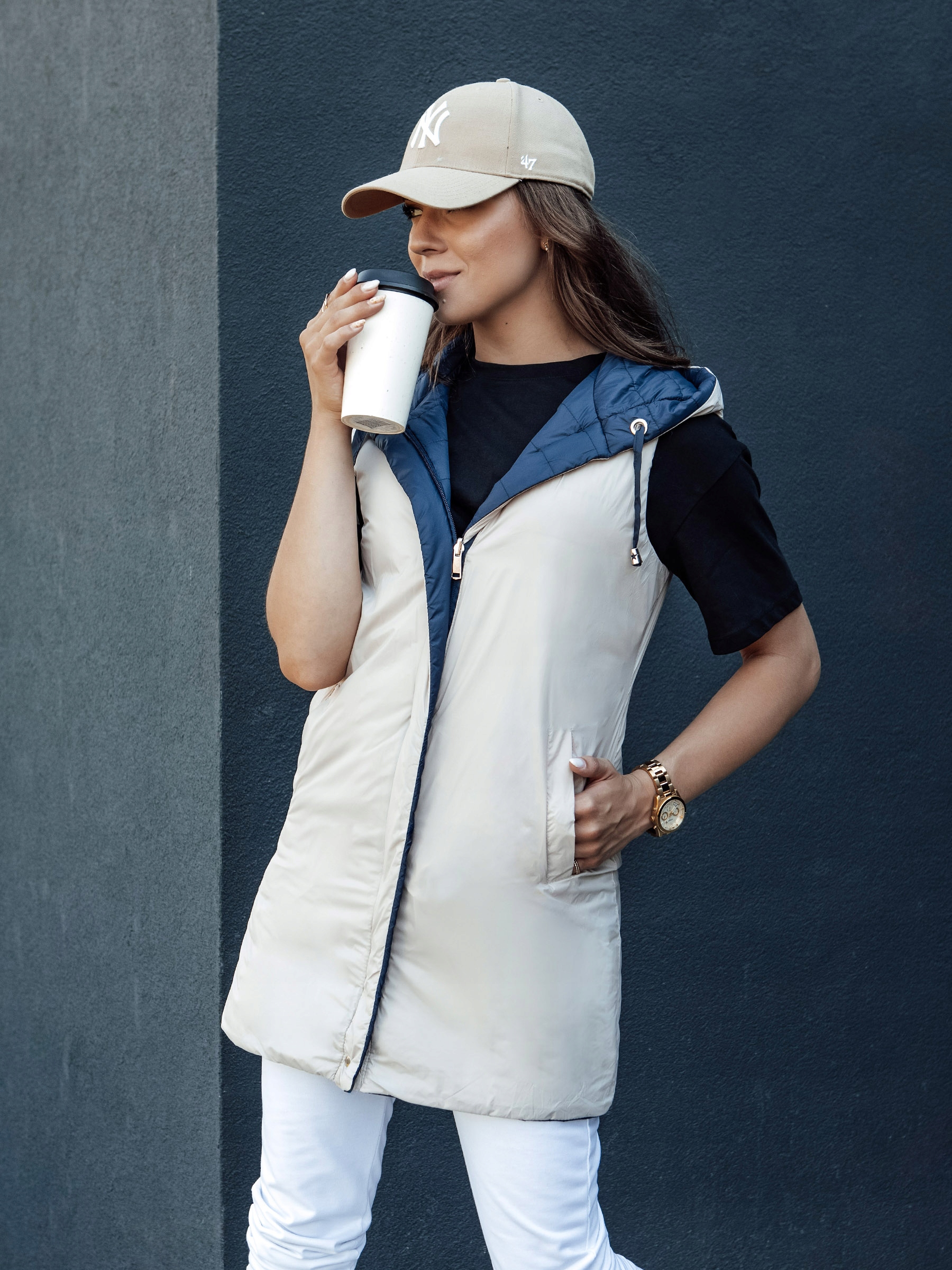 двосторонній жилет є обов'язковим у кожному гардеробі. Практичний і стильний, забезпечує тепло в прохолодніші дні, дозволяючи при цьому різноманітні укладки завдяки двом різним кольорам. Виготовлений з високоякісних матеріалів, це гарантує носити комфорт. Ідеально носити щодня, він ідеально поєднується як з повсякденними, так і з спортивними наборами. Відкрийте для себе універсальність та моду в одному! > Бюст: 87 см
