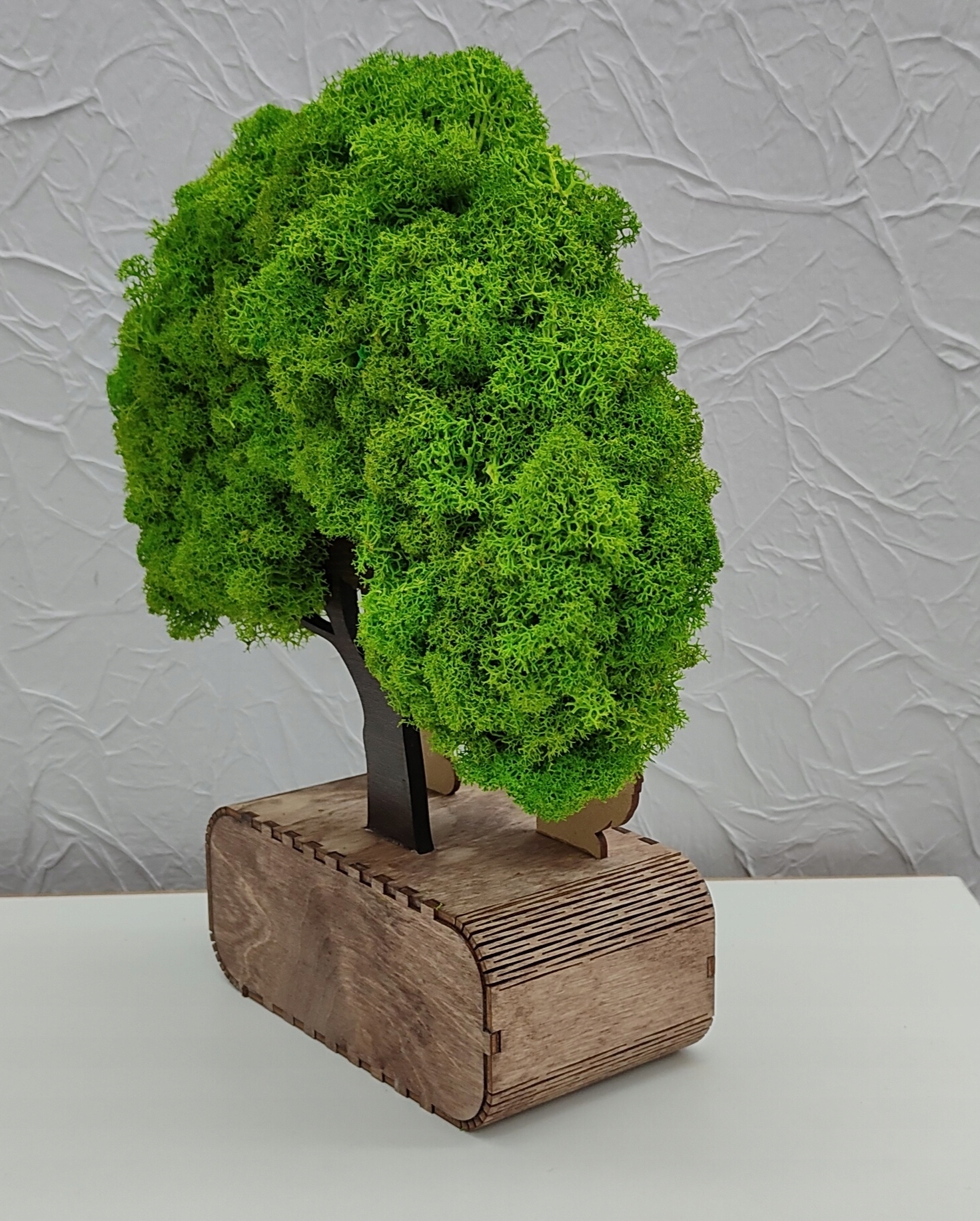 Стабілізований мох, який використовується для дерева, є чудовим лишайником і не потребує догляду. Його не потрібно обрізати і поливати. Для життя йому потрібна лише волога з повітря, яку він сам поглинає. Може жити до 11 років. На вибір є кілька кольорів моху.