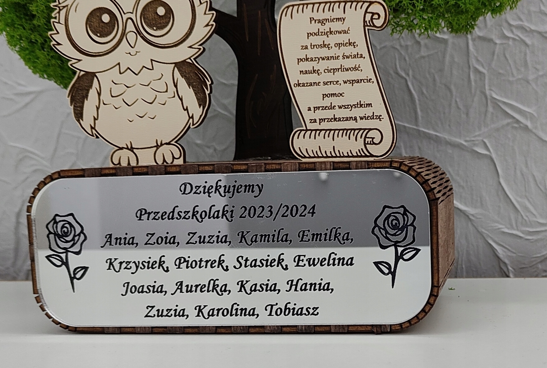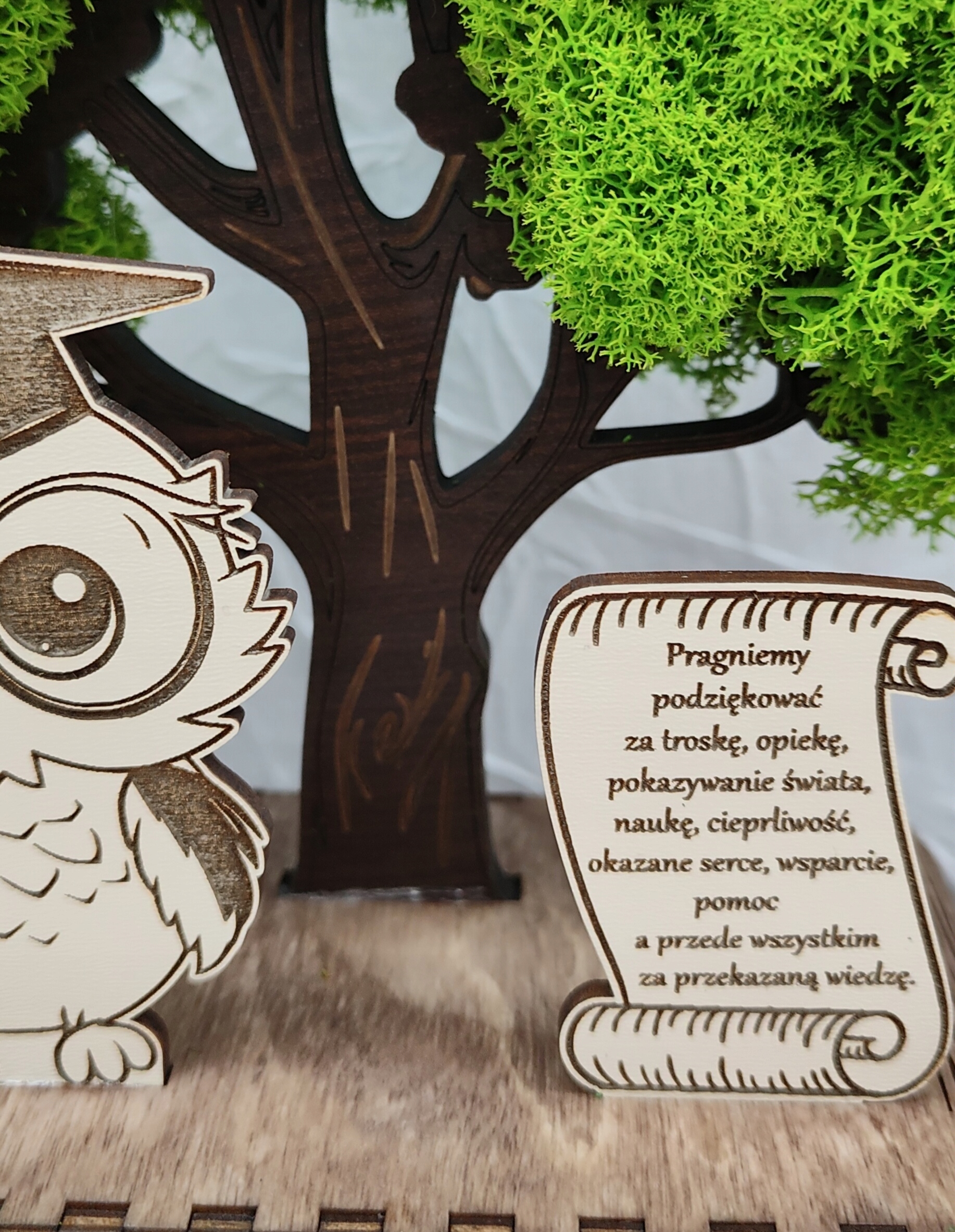 Дерево бонсай, мох, 3D статуетка, кінець року, сова, будь-яке гравіювання, золото
