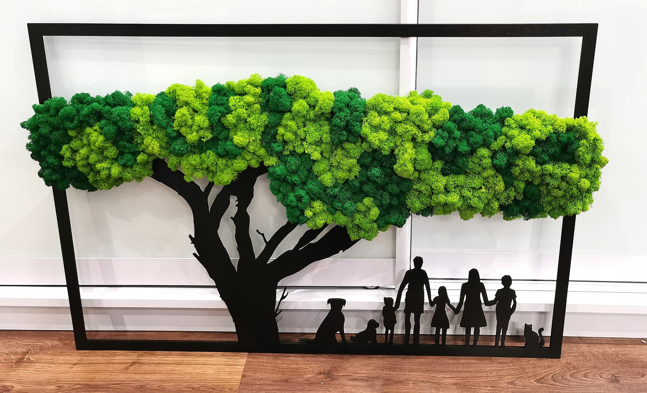 Створіть унікальну прикрасу з душею! Це прямокутне дерево з натуральним мохом і індивідуальною конфігурацією сім’ї є прекрасним символом зв’язку, близькості та коріння.