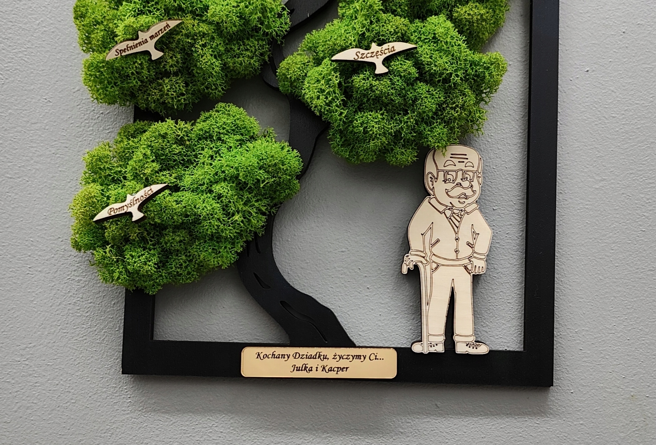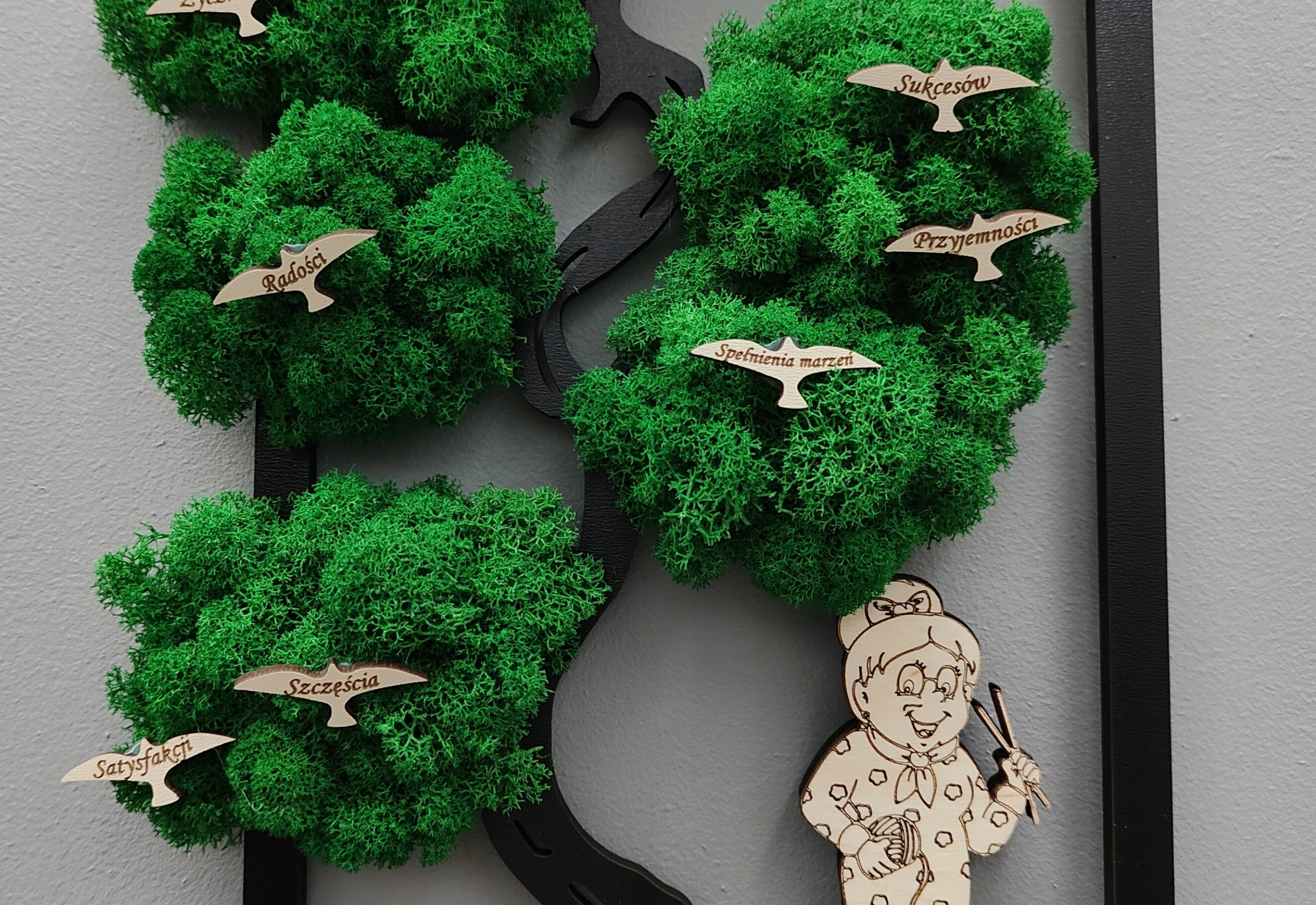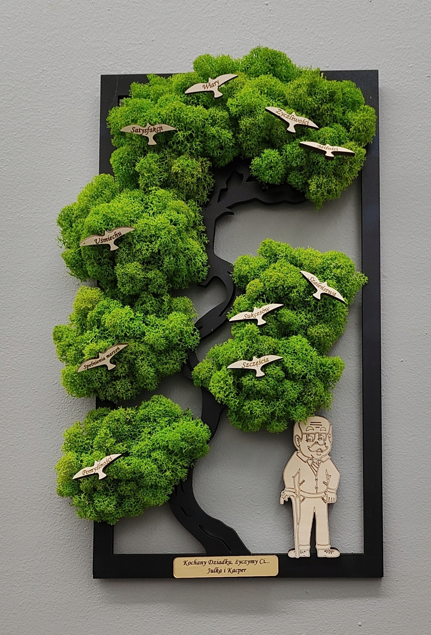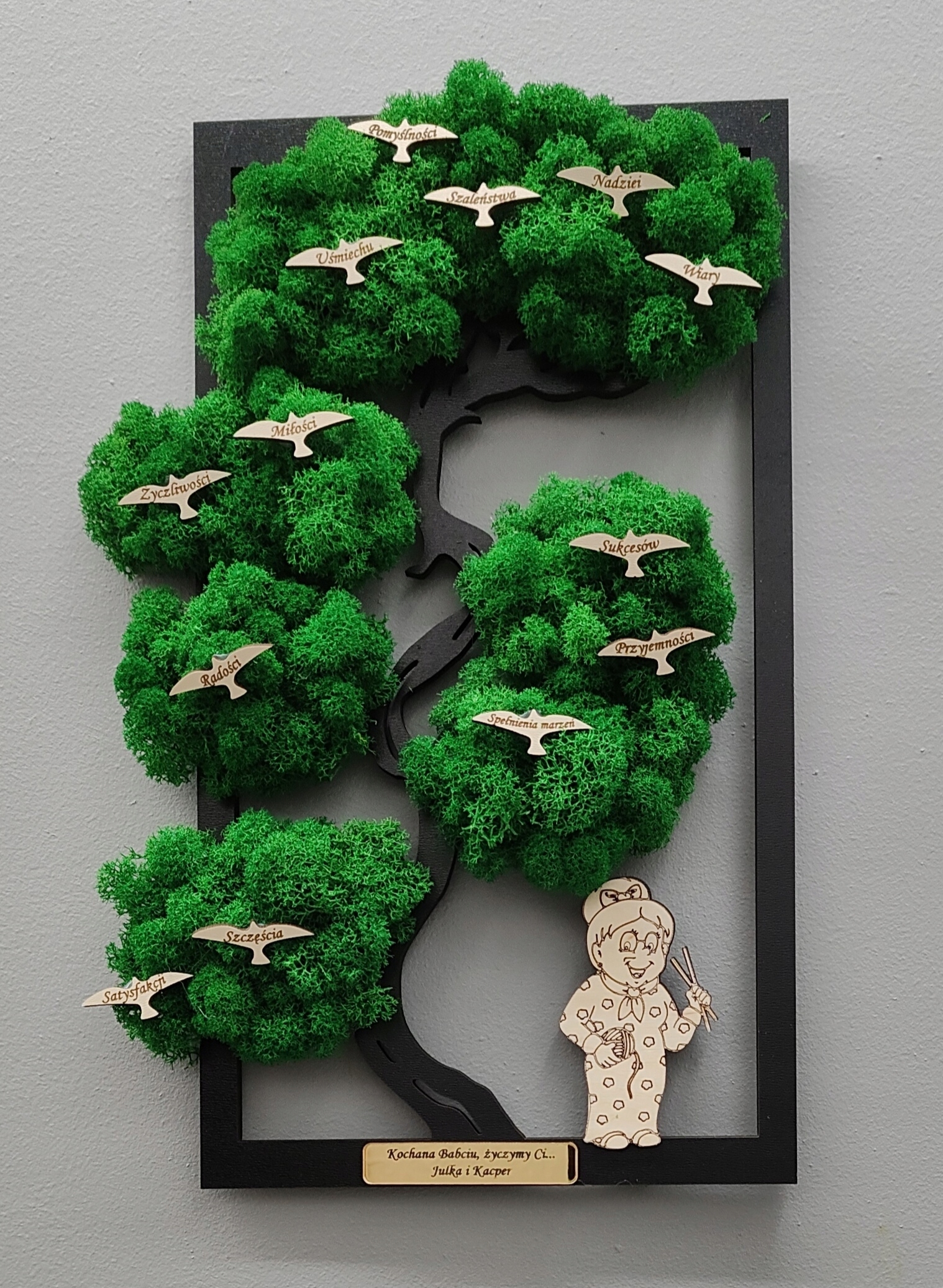 Дерево бонсай з мохом, мох, день бабусі, птахи дов, гравіювання, 40х26см