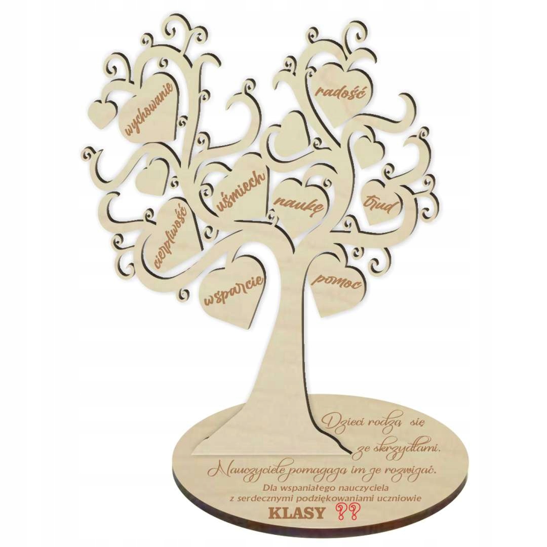 Прекрасне дерево, повне сердечок і важливих слів, ідеальне як подарунок і подяка чудовому вчителю. Ялинка надійно стоїть завдяки стійкій основі з веселим віршиком і побажаннями. Чудовий сувенір, який довгі роки буде викликати посмішку на обличчі багатьох вчителів і вихователів. Щоб клас міг точно підписати свої побажання, в набір входять стікери з цифрами 1-8 і літерами A-F.
