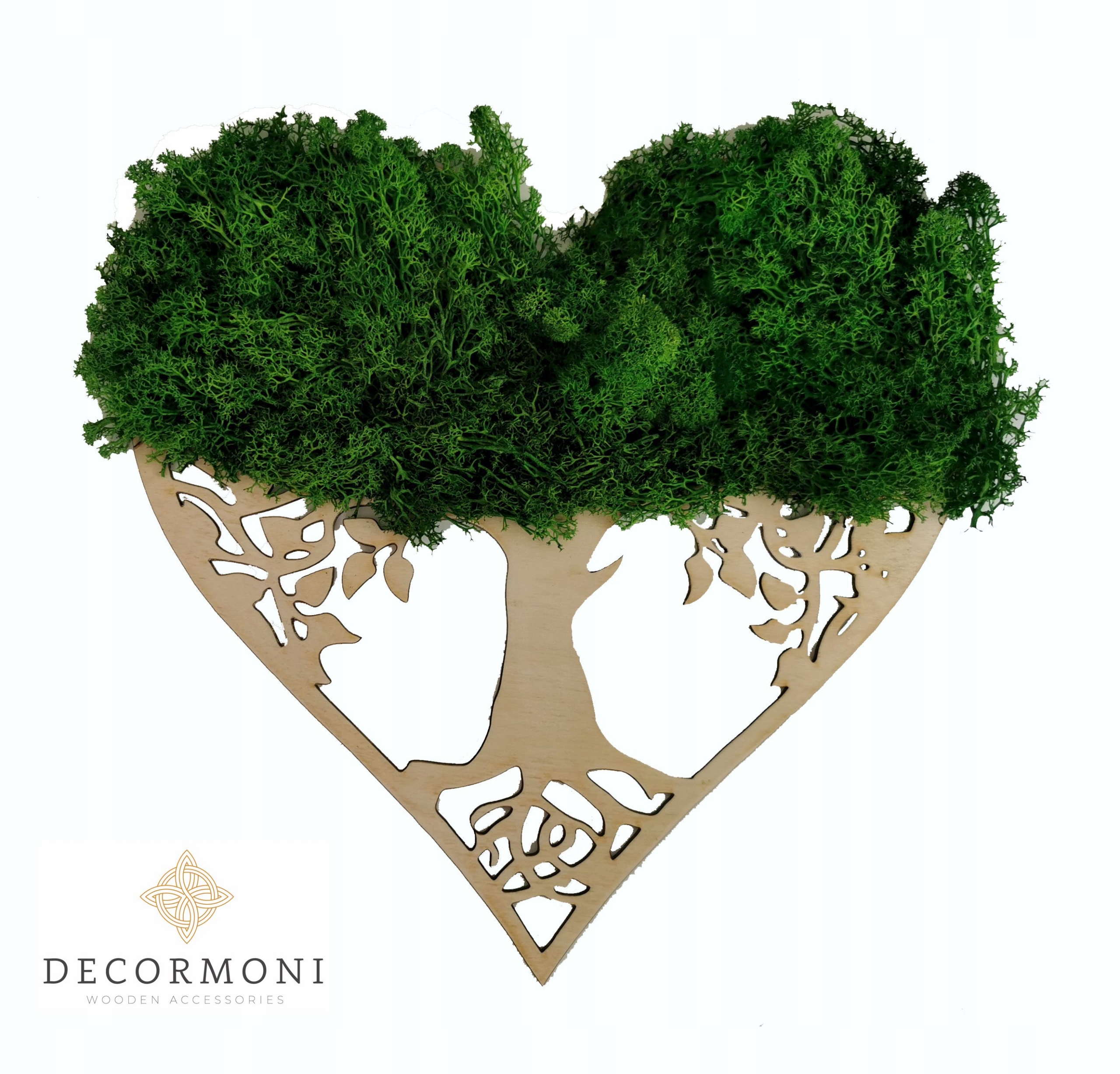 Оригінальна картина дерева в сердечку з оленячим мохом – чудова прикраса для дому, яка не потребує догляду.
