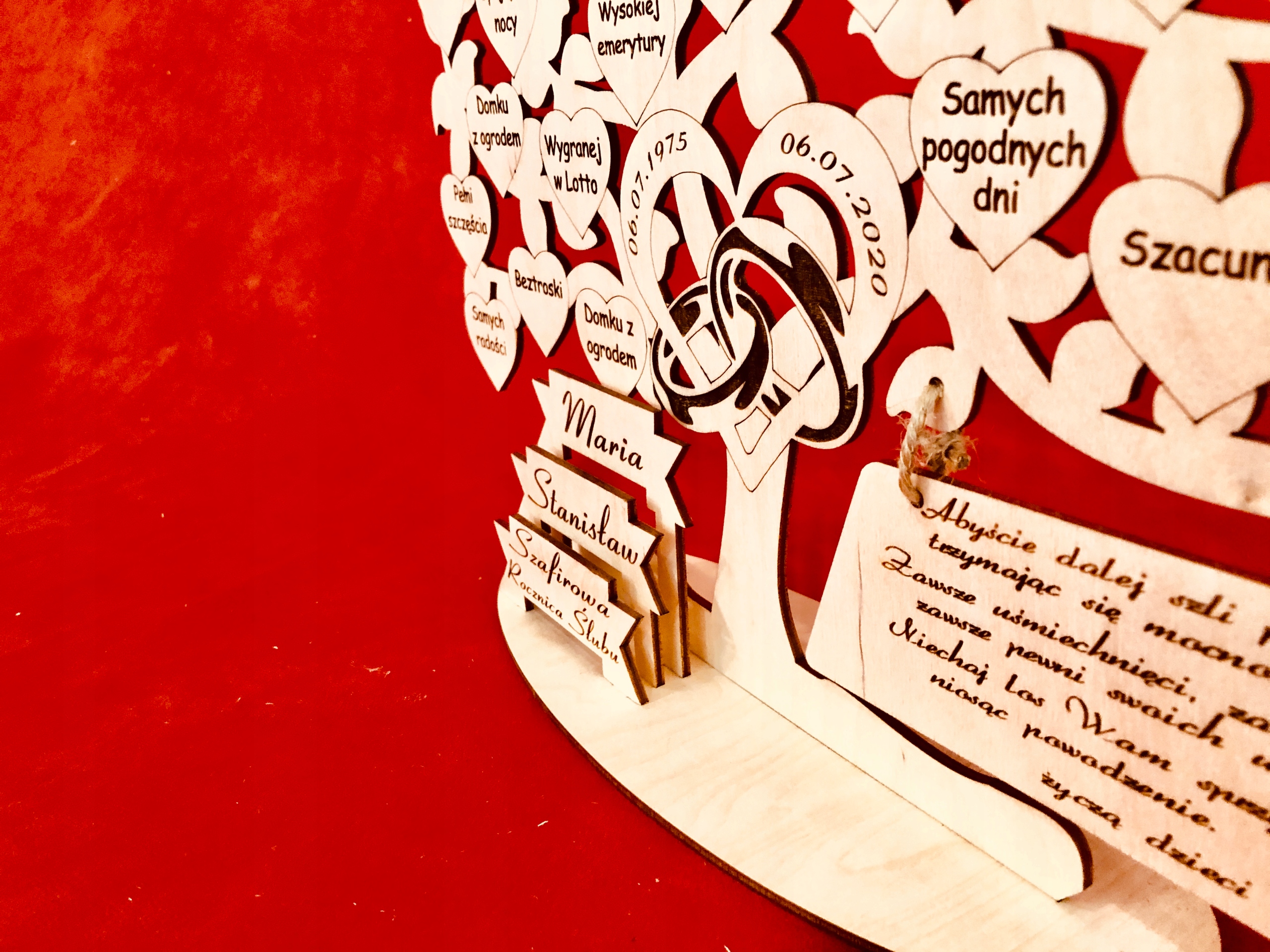 Дерево з лазерним гравіюванням на річницю весілля