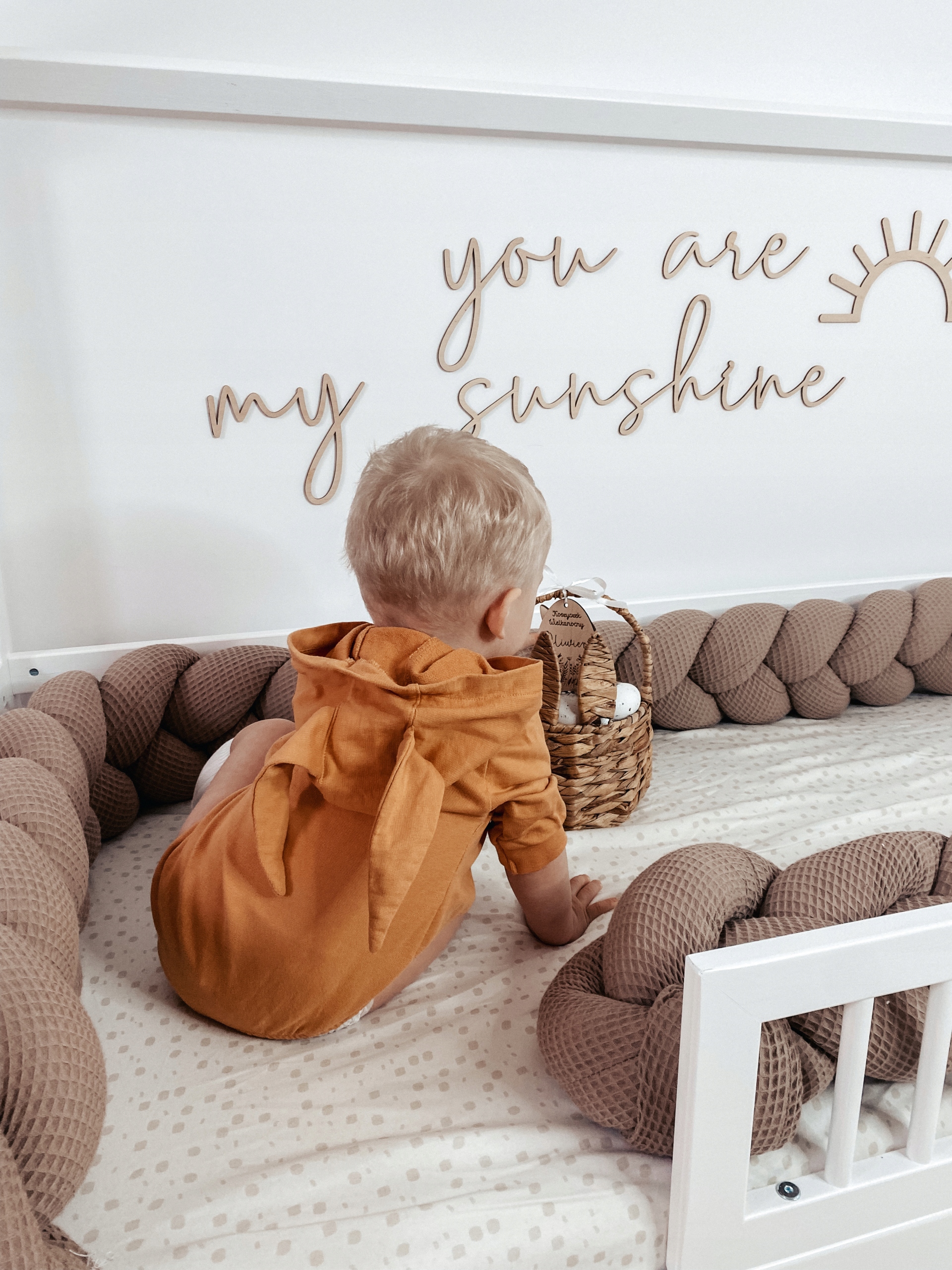 Дерев’яний напис «You are my sunshine», який можна наклеїти на стіну, зробить кімнату вашої дитини рівною ще більше затишно та мило! Виберіть один із 8 дизайнів, який ідеально пасуватиме до дитячої кімнати.