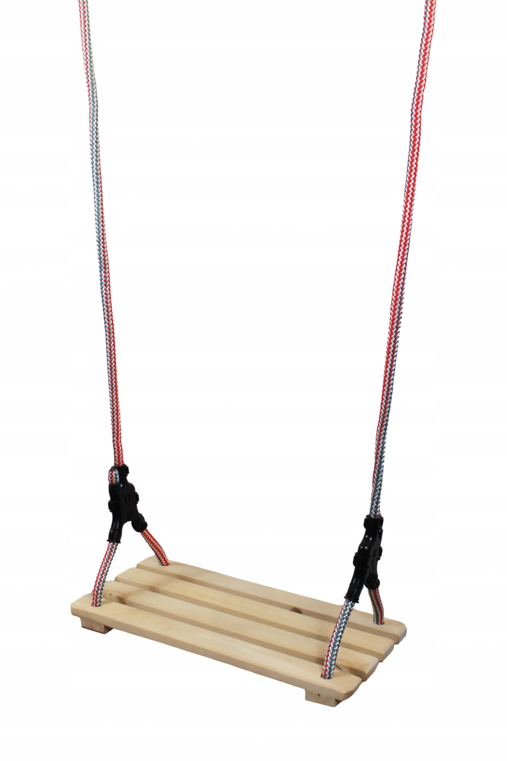 Прямокутна гойдалка повністю виготовлена з натуральної непросоченої деревини. Гойдалки не мають спинки, завдяки чому дитина розвиває почуття рівноваги та координацію. У гойдалках використовуються товсті, міцні мотузки, які, тримаючись за них, зміцнюють силу хвата та координацію пальців. Гойдалки можна встановити як в саду, так і вдома.