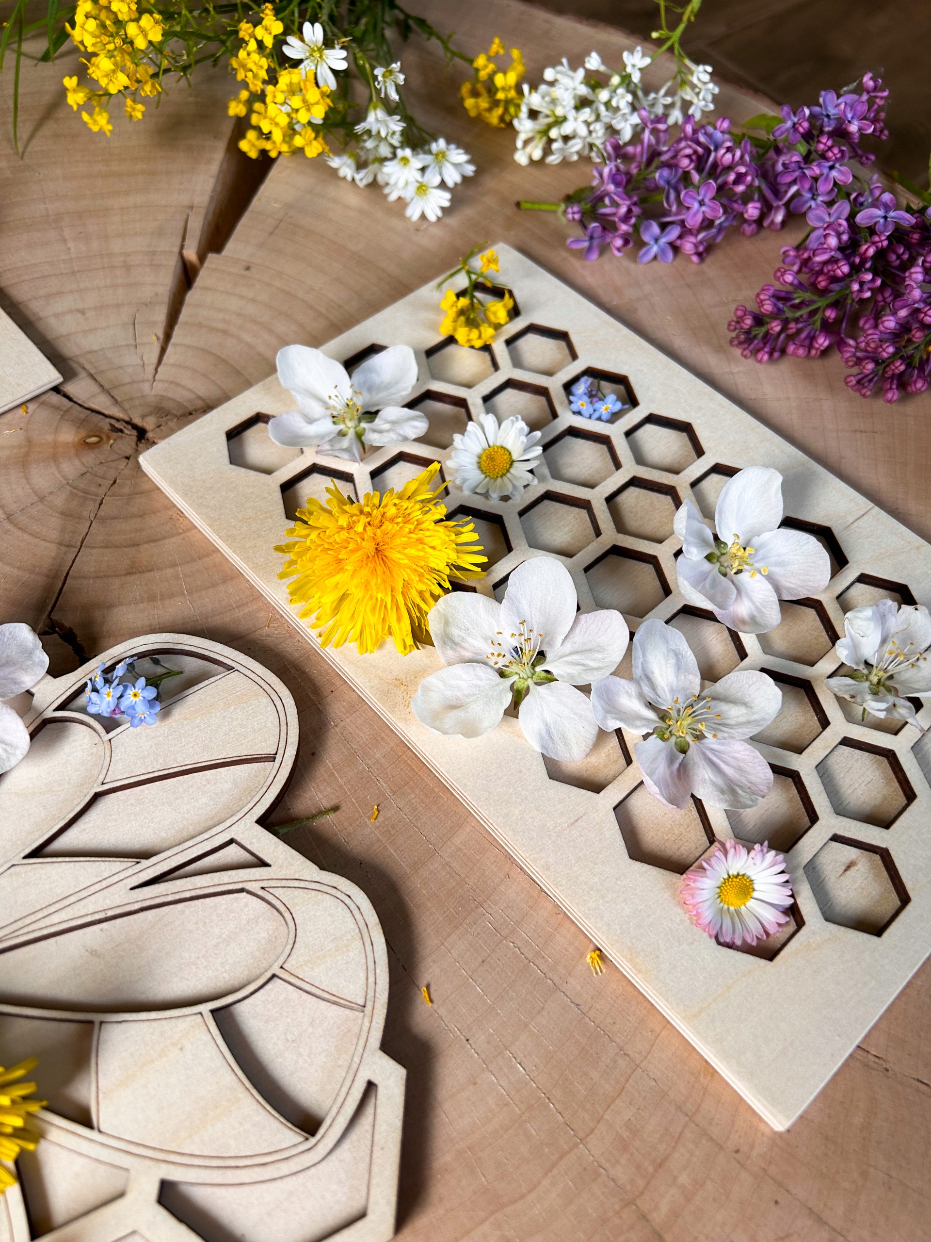 Три креативні стенди: Бджола на квітці та 2 банки меду, які ідеально підходять для творчих розваг.