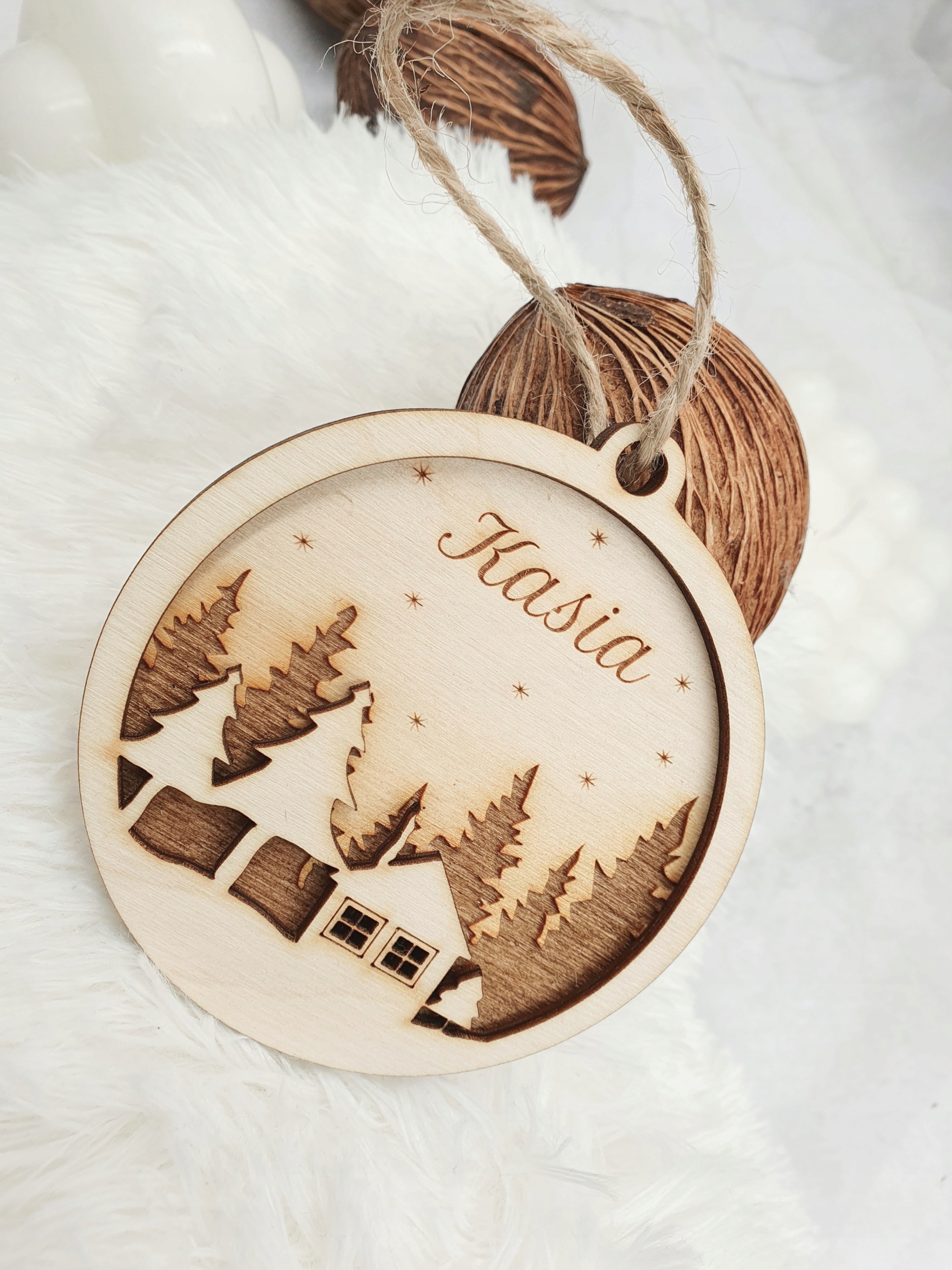 Дерев’яна бубле з назвою. Різдвяна прикраса.