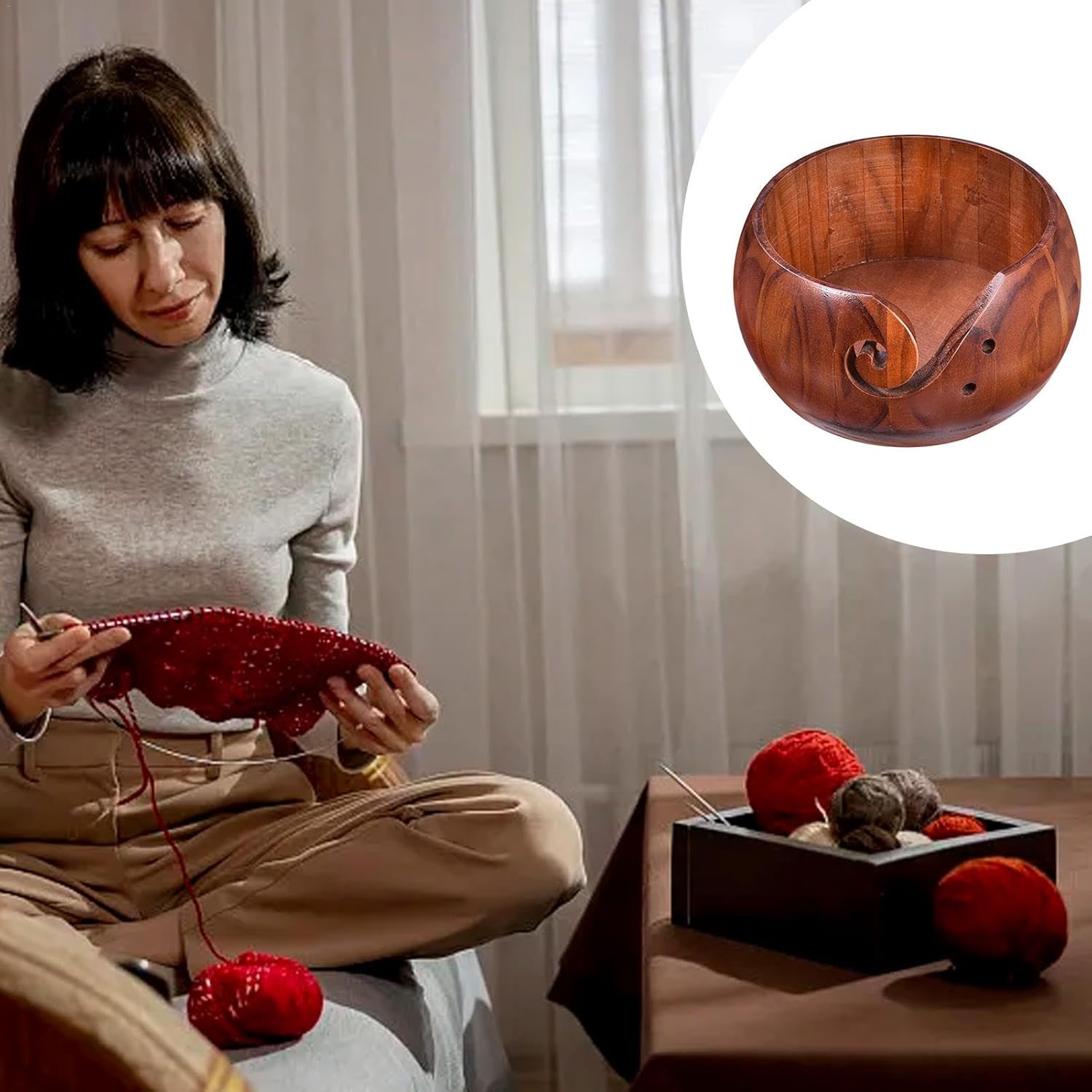🪵🪵🪵Гарний дизайн: чашка має згорнуту форму з двома невеликими отворами збоку, які полегшують затягування нитки та запобігають сплутуванню пряжі під час в’язання; Ця дерев'яна миска з пряжі є водночас елегантною та практичною для вашого журнального або робочого столу; його також можна використовувати як декоративну вазу, цукорницю чи підставку для рослин.