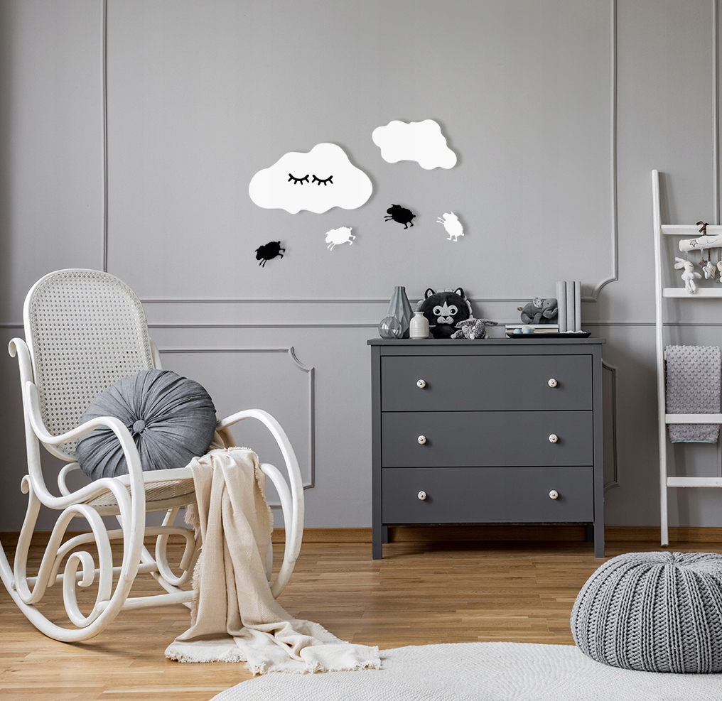 Виріб виготовлено повністю з дерева і, безсумнівно, внесе велику різноманітність у вашу дитячу кімнату, а може навіть більше. Ідеально підходить для кімнат, які потребують часточки радості :) Красиві білі хмари чудово впишуться в дитячу кімнату, надаючи їй свіжий вигляд. Що ще краще, набір також включає 4 ягняти, тож засинати буде веселіше, ніж будь-коли раніше :)