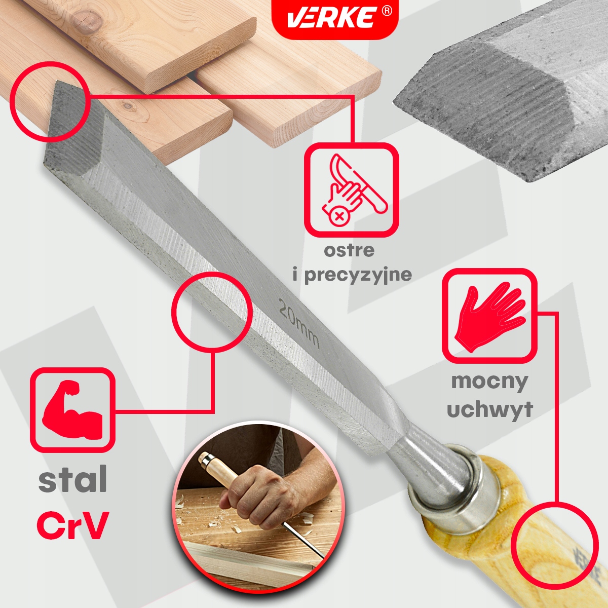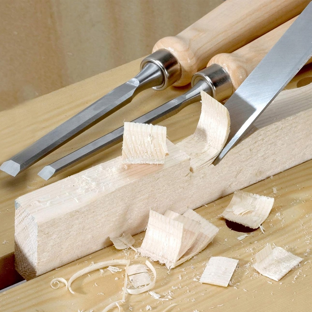 Набір зубців для столярної деревини 4 шт. Зубили, оснащені зручними дерев’яними ручками , які забезпечують комфорт роботи та дозволяють легко керувати інструментом. Крім того, серцевина має металеве кільце запобігання ручці занадто швидко зламати. - Леза, виготовлені з інструментальної сталі, що дозволяє швидко загострювати інструмент.