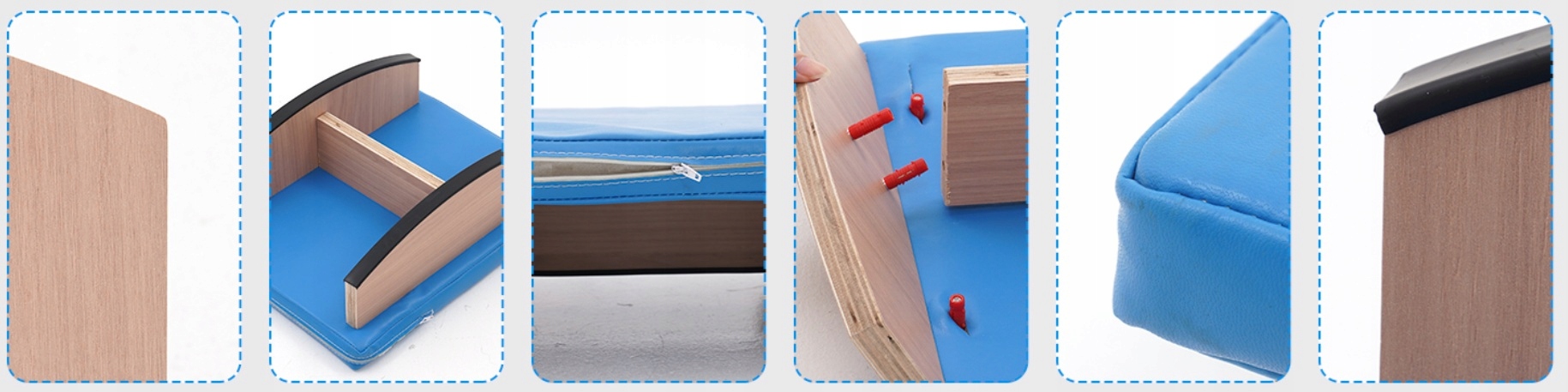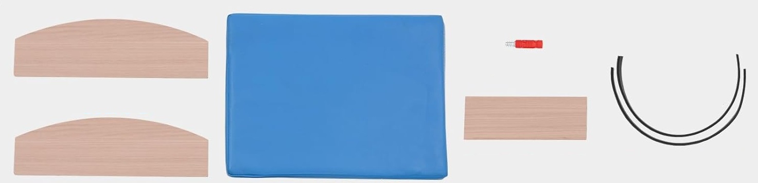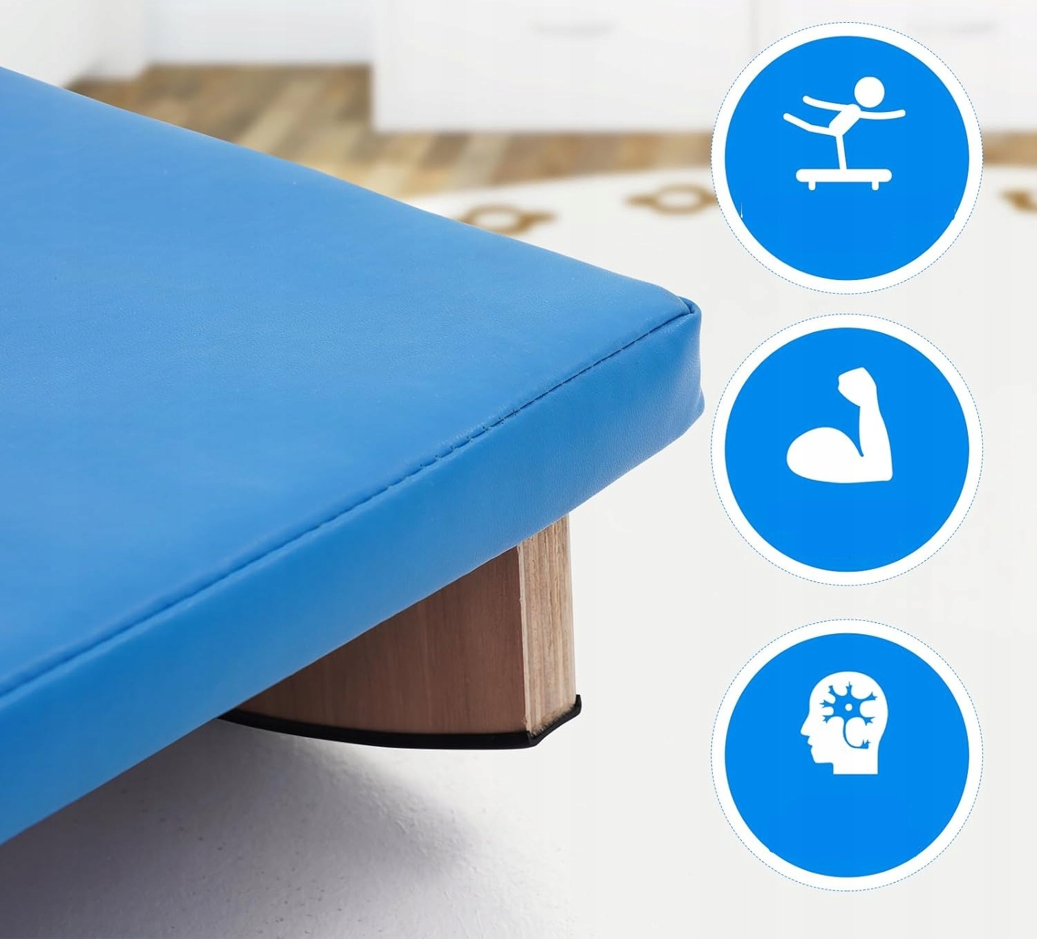 Покритий м’якою подушкою зі знімним чохлом. Синій чохол із водонепроникного щільного матеріалу, який легко чиститься.