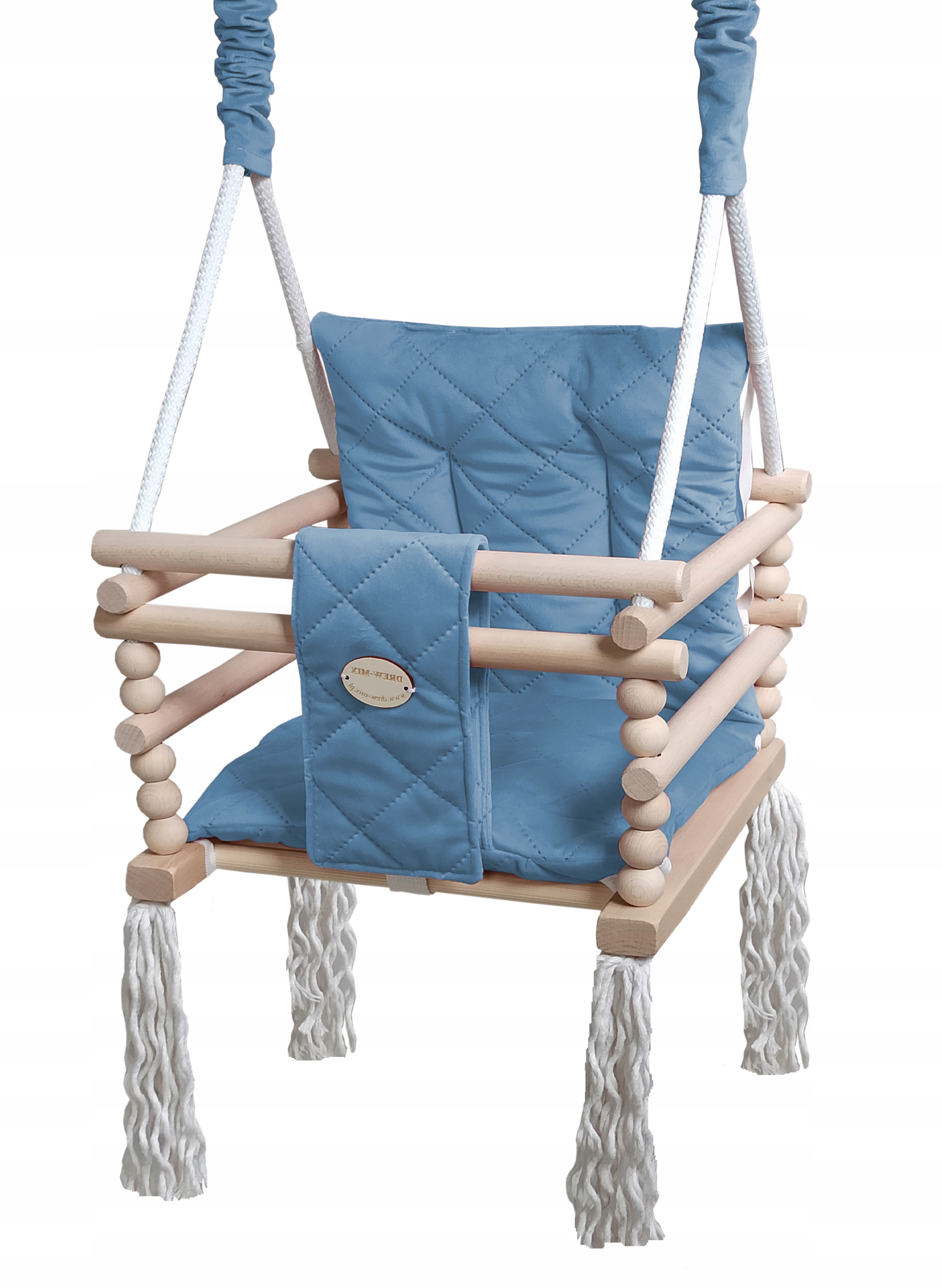 - До мотузок(під сидінням) прикріплені 4 товсті китиці з бавовняної пряжі, які надають гойдалці додаткового шарму.