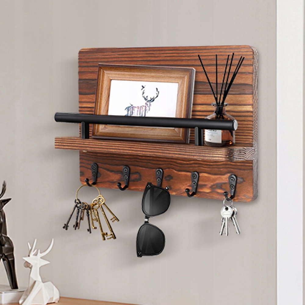 ◾Виготовлений із високоякісної деревини, ключниця поєднує в собі міцність із сільською естетикою, що робить її чудовим доповненням до будь-якого під’їзду, холу чи офісу. 5 настінних гачків для ключів забезпечують достатньо місця для ключів від будинку, ключів від автомобіля та навіть невеликих сумок, допомагаючи вам підтримувати безлад у середовищі.
