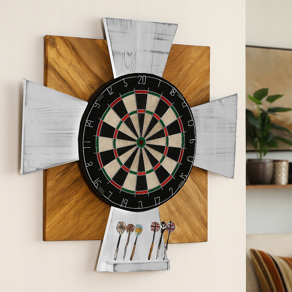 дерев'яна дошка John Paddle для Dart Order White Oak - це поєднання унікального дизайну та функціональності. Натхненний формою медалі -замовлення, це не лише практична обкладинка для щита дартса, але й ефективний декоративний елемент. Його геометрична форма стосується хреста порядку, а обробка в тіні білого дуба надає йому легкість та благородний характер.