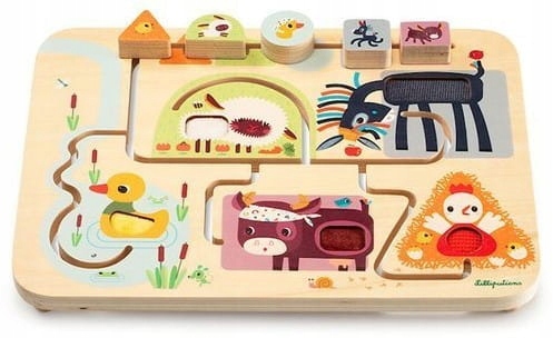 Дерев'яний сенсорний лабіринт із колекції Farma бельгійського бренду Lilliputiens — унікальне багатофункціональне джерело розваг та навчання для допитливих малюків. .