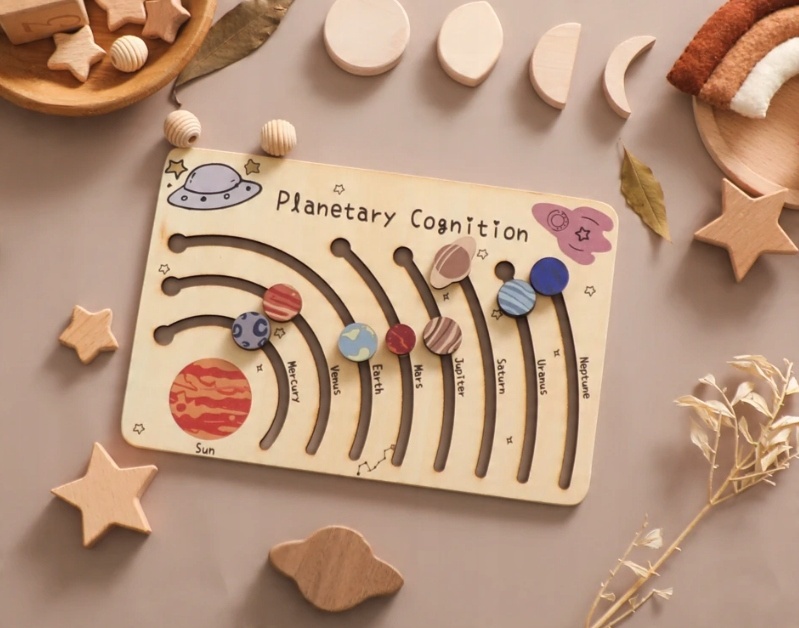 ДЕРЕВ'ЯНА ДОШКА СОНЯЧНА СИСТЕМА ПЛАНЕТИ КОСМІС ІГРАШКА МОНТЕССОРІ