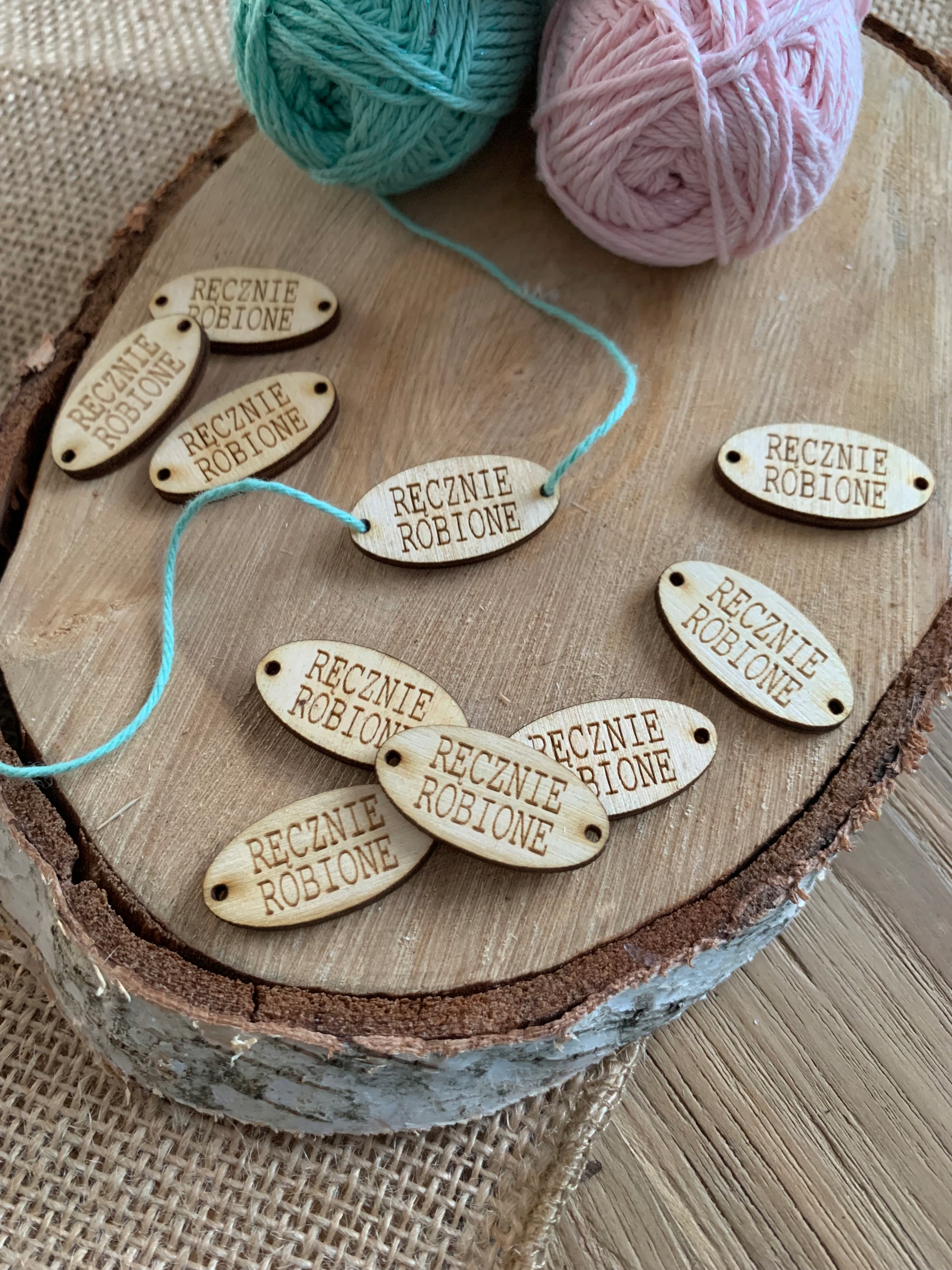 Предметом продажу є набір дерев'яних бирок з 10 штук з написом "HANDMADE".