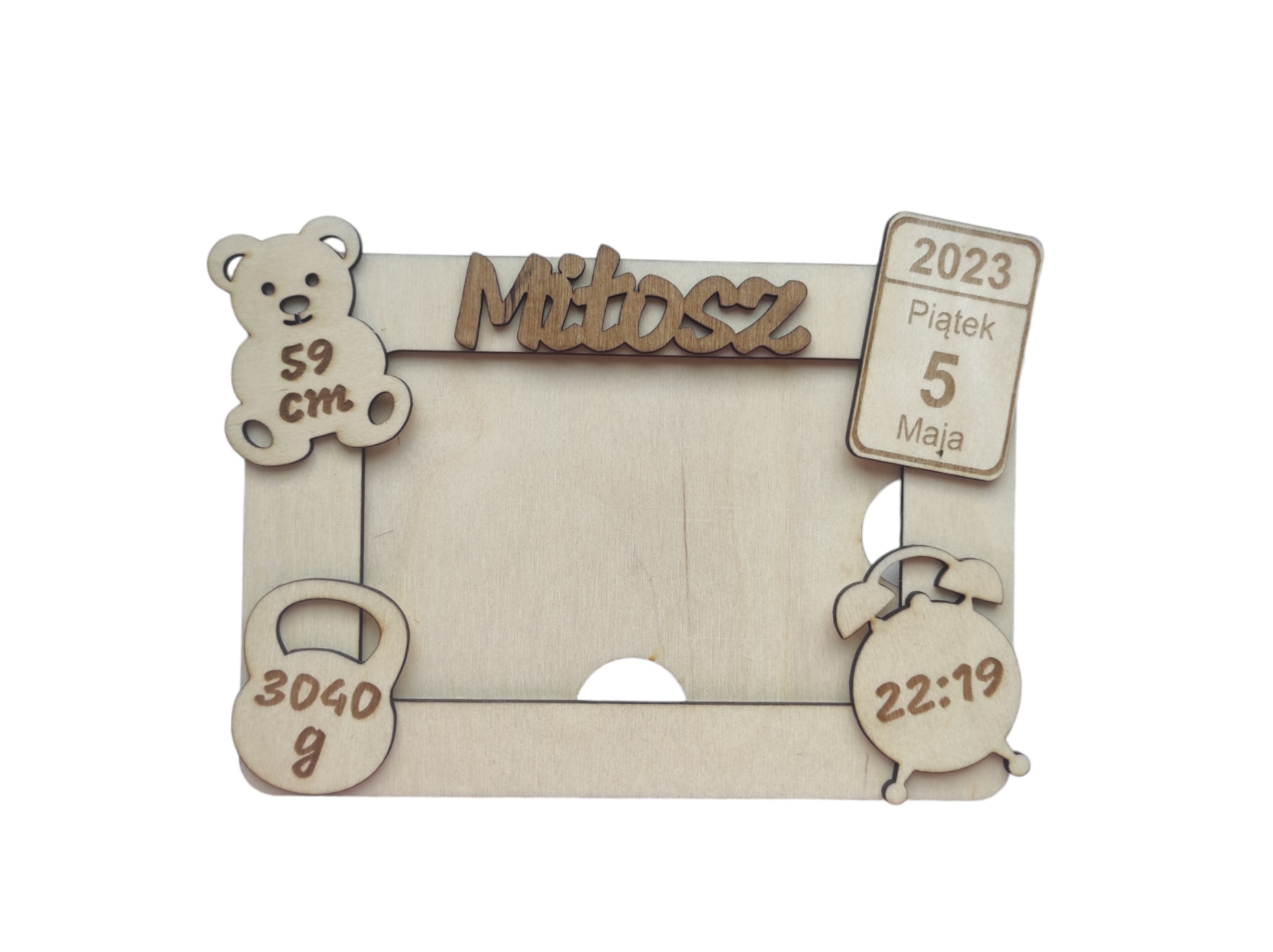 На наступному аукціоні ми представляємо дерев'яну фоторамку формату 15x10 з іменем дитини та свідоцтвом про народження. Це ідеальний подарунок на народження дитини, ювілей, день народження або як сувенір на хрещення. Для рамки характерні опуклі клеєні елементи з гравіюванням свідоцтва про народження дитини!