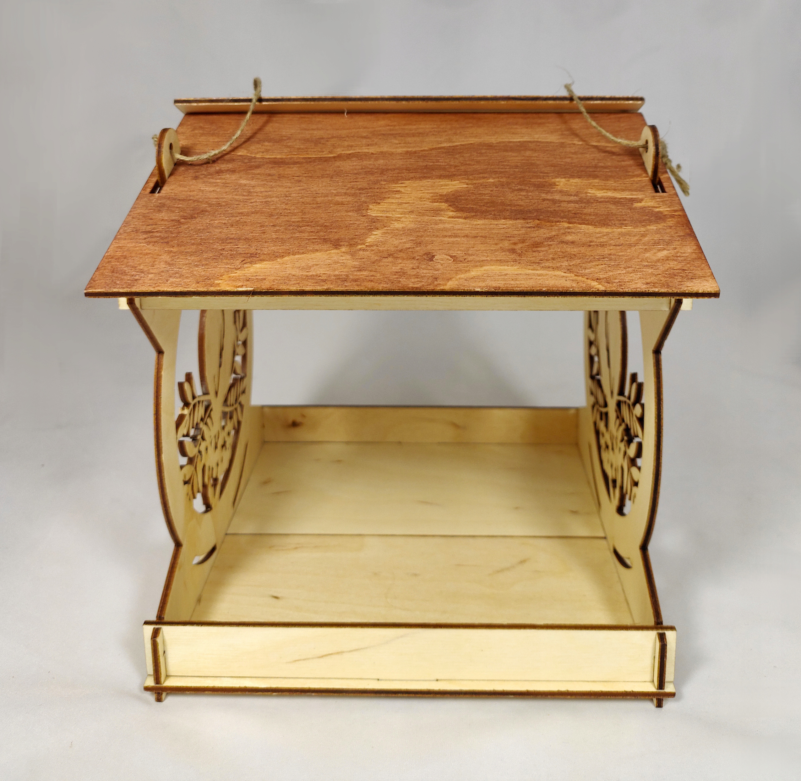 ДЕРЕВ'ЯНА ГОДІВНИЦЯ ДЛЯ ПТАХІВ З АЖУРНИМ ЛАКОМ