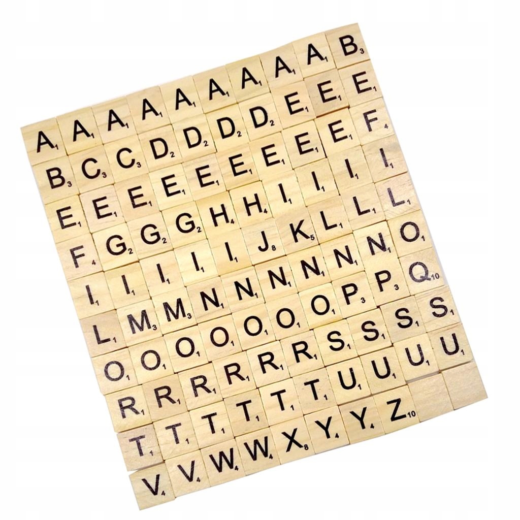 Фантастичний набір дерев'яних літер -плиток. Чорні літери зі значеннями літер.