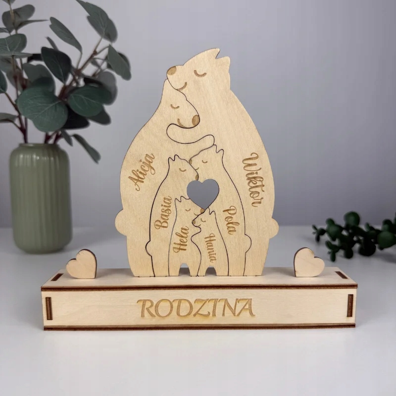Дерев'яна головоломка плюшевий ведмідь з 4-х осіб сім'ї персоналізація подарунок деревини