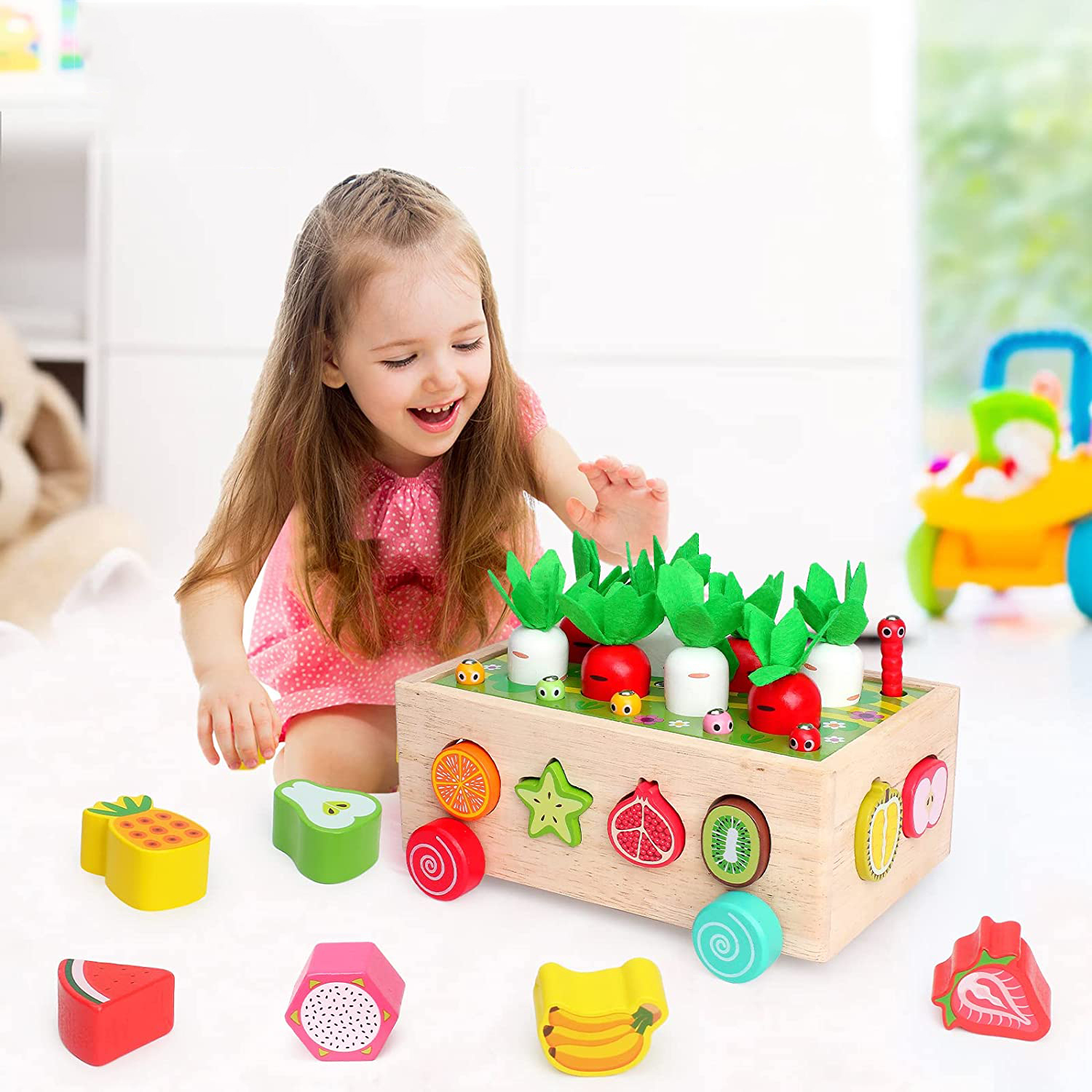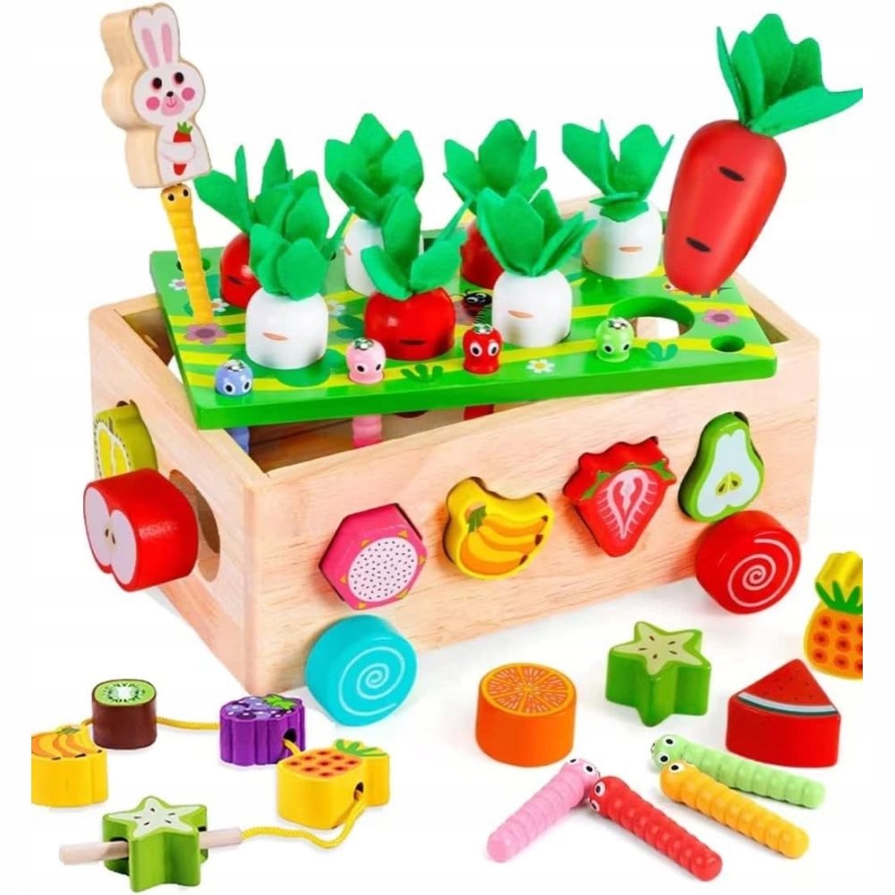 🥕 -Дизайн 7 в 1, освітній і багатофункціональний, може малювати редис, розпізнавати фрукти, коригувати форму, вантажівку, розпізнавати кольори, кроликів, які ловлять черв’яків, зберігати та сортувати, щоб подарувати дітям масу задоволення.