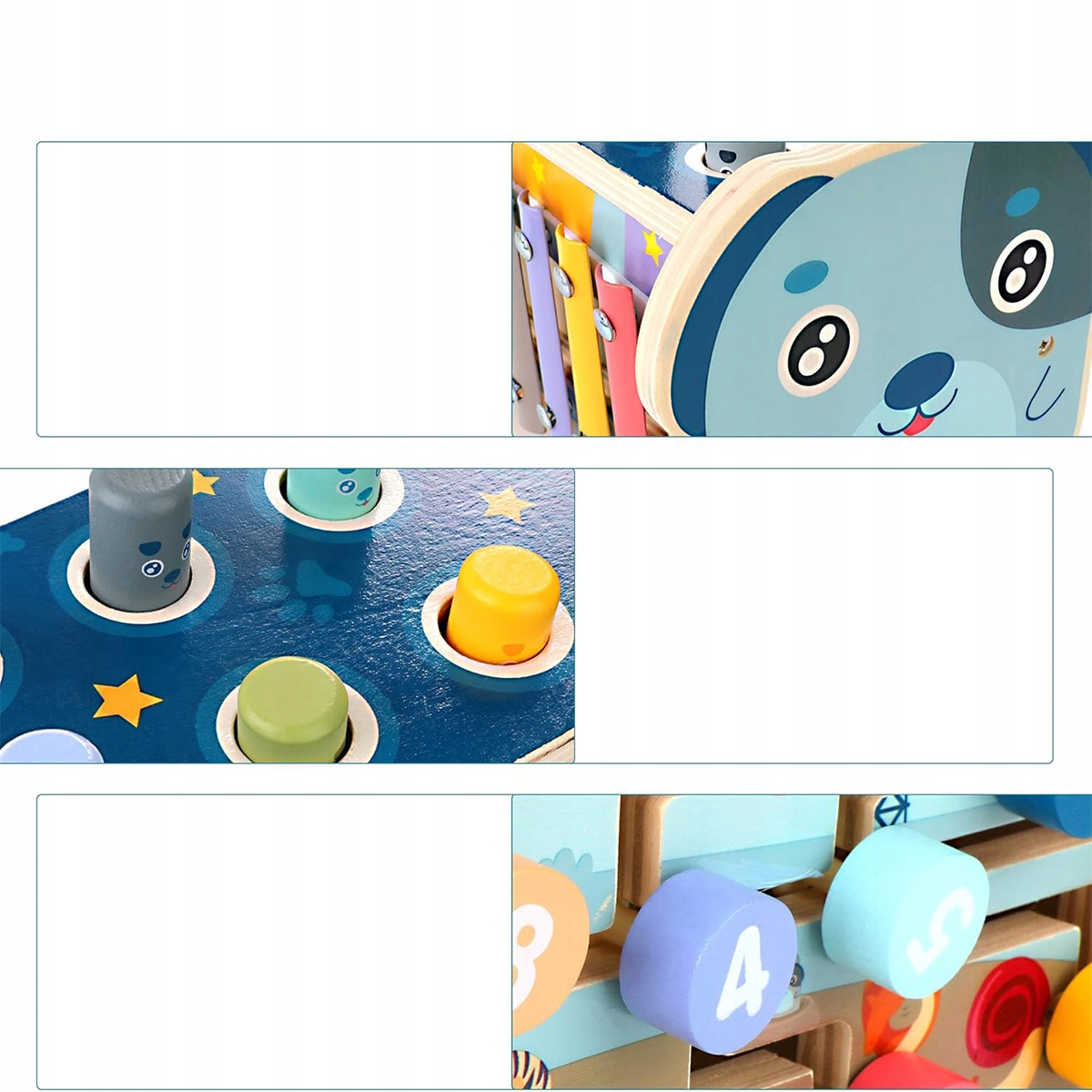 ➡️Цей універсальний набір — це класична лавка для куття, музичний ксилофон і головоломка з цифрами, 3 в одному. Вдаряючись об десять кілочків на лавці, цуценята підстрибують, демонструючи свої пустотливі посмішки. Два молотки та молотки з головоломкою-лабіринтом з цифрами з іншого боку дозволяють двом або більше дітям розділити радість.
