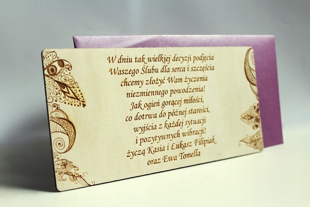 Дерев’яна гравірувальна картка весільних побажань конверт
