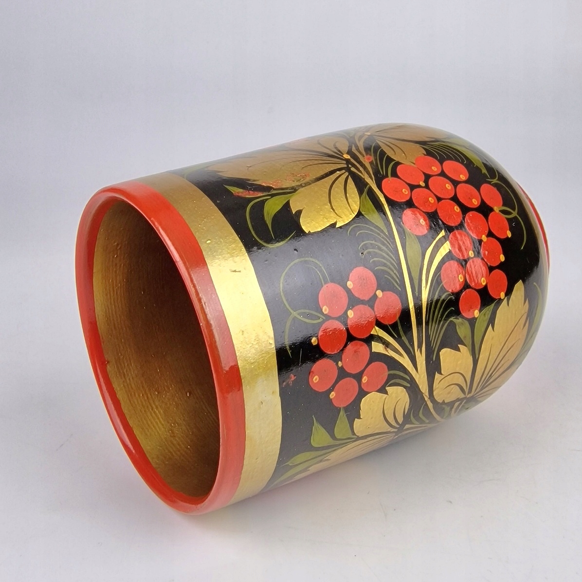 ДЕРЕВ'ЯНА ГРУЖКА / ВАЗА / КОНТЕЙНЕР РОСІЯ СРСР ЧОХЛОМА РОЗПИСАНИЙ РУЧНО