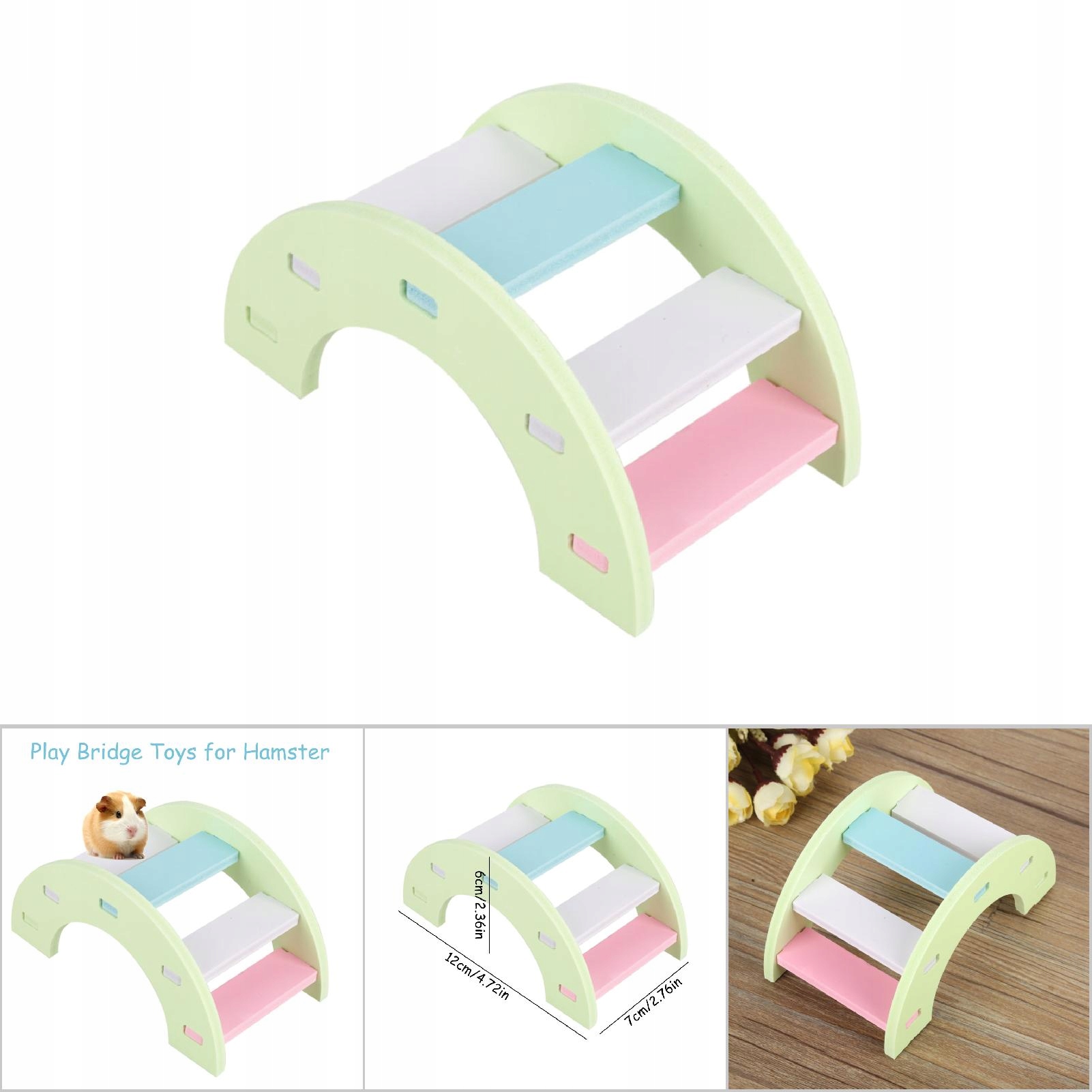 - - це смішний ігровий міст для хом'яків. Усі оздоблення є нетоксичними, безпечними та екологічними. Усі частини округлі, уникайте поранення друзів. Вони роблять яскравий колір і дзвін, щоб привернути увагу хом'яків, і їм це сподобається! Ідеальна іграшка для хом'яка, яка грає вдома та задовольняє їх цікавість щодо навколишнього світу.