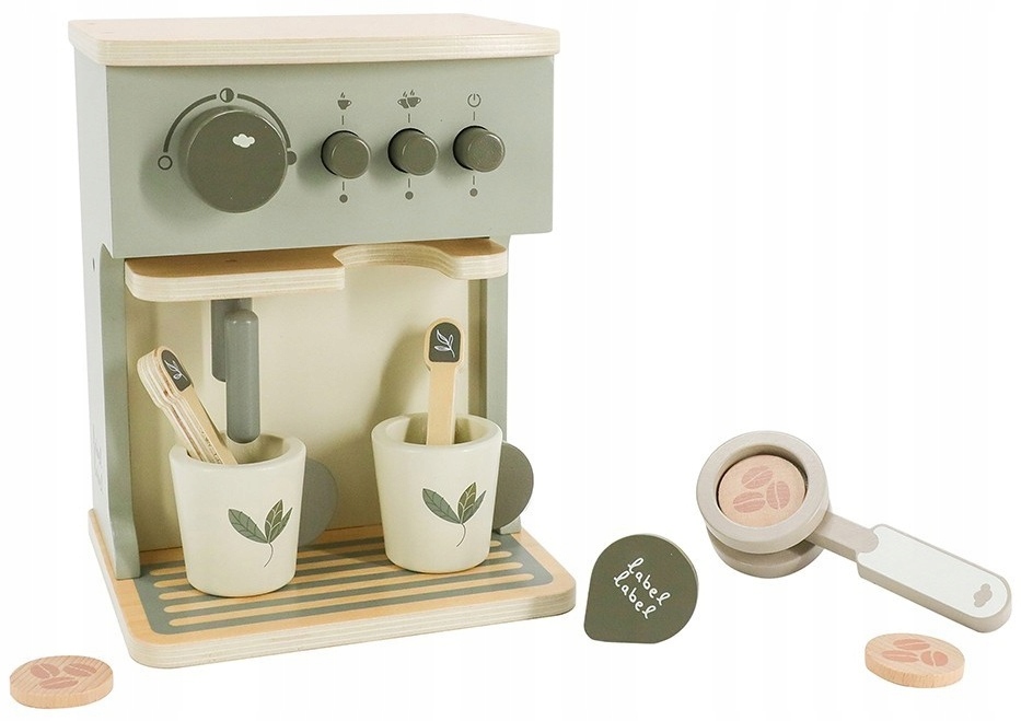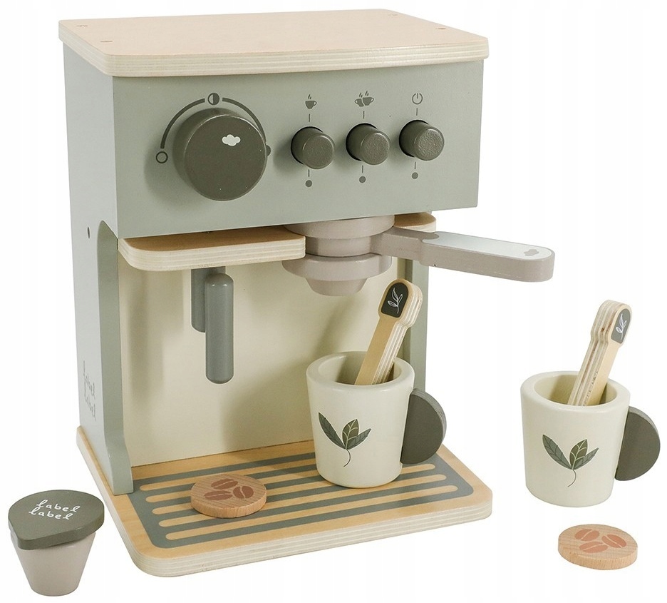 Виготовлена з високоякісного матеріалу. FSC-сертифікована деревина, кавова машина була пофарбована безпечними фарбами на водній основі в приглушені кольори, характерні для Label Label. Його стильний зовнішній вигляд ідеально вписується в дитячу кухню, кімнату чи ігрову кімнату.