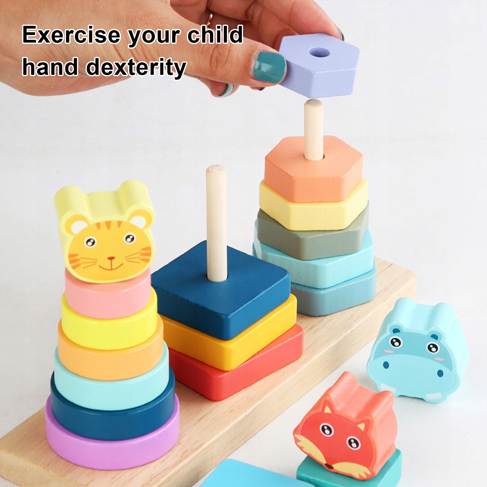 1. Це покращує розпізнавання форми: дерев’яний набір блоків містить елементи, укладені тваринами, які допомагають дітям розпізнати різні геометричні форми, підтримуючи їх спостереження та просторову уяву.
