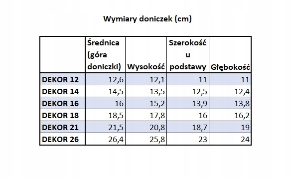 Вазони серії Dekor доступні в 6 розмірах (діаметр вимірюється у верхній частині горщика):< /h2>- 12 см
