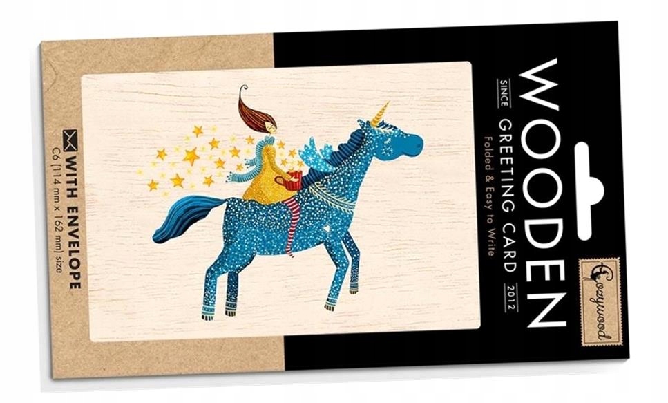 ДЕРЕВ'ЯНА КАРТКА C6 + КОНВЕРТ З ЄДИНОРОГОМ
