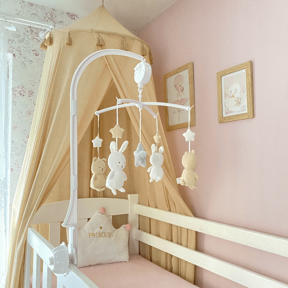 Плюшеві ведмедики та кролики-карусель у стриманих стильних кольорах ідеально підійдуть як подарунок як для дівчаток, так і для хлопчиків. Карусель-музична шкатулка стимулює зір і слух дитини, розслабляючи її. Дає дітям відчуття безпеки та створює гарну прикрасу для дитячого інтер'єру.