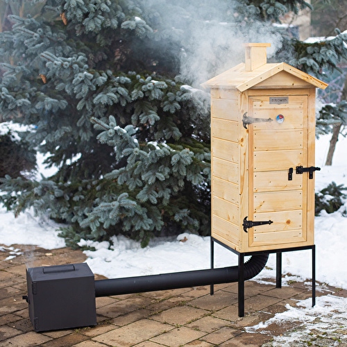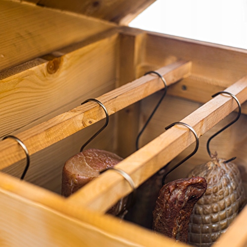 - Зовнішній розмір дерев’яної камери Smokehouse: 50 x 50 x 100 см - без даху