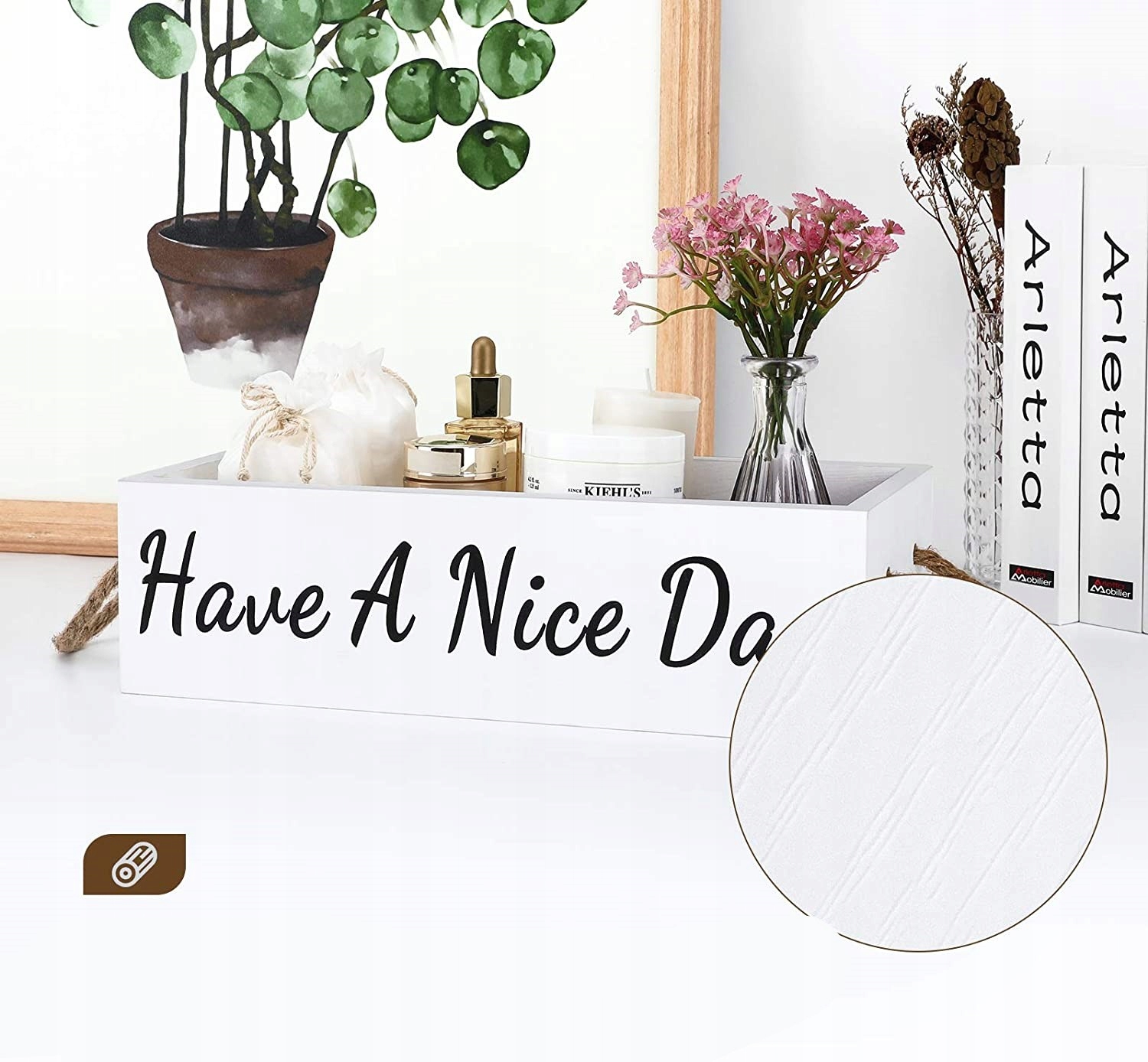 Вишукана коробка для прикраси ванної кімнати: натуральна конструкція деревини та стиль сільської місцевості додають вашому дому трохи сільського ретро -стилю. З двосторонньо надрукованими словами, кумедний спосіб скрасити день