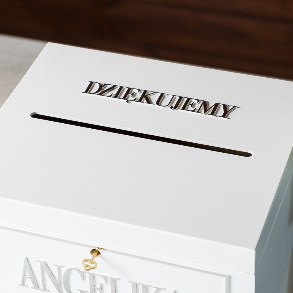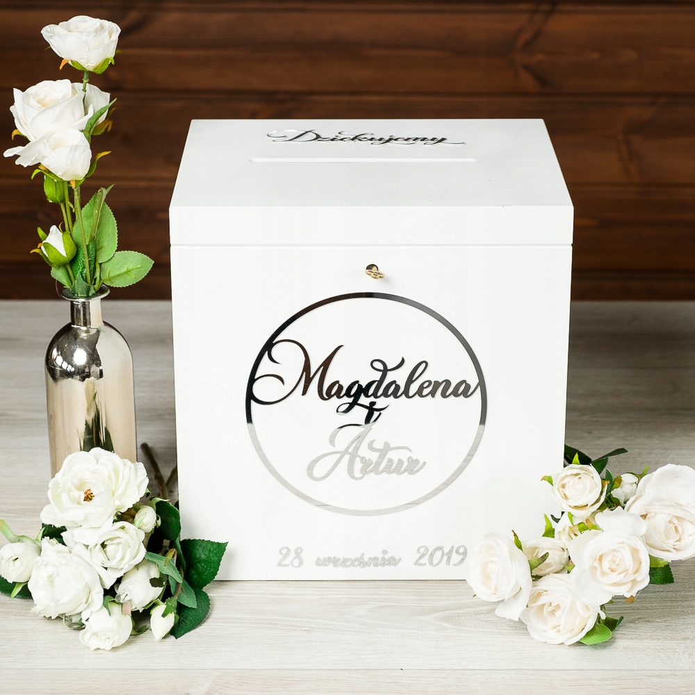 Красива, стильна, дерев'яна коробка для конвертів з ключем замок. Доступні різні дизайни дзеркальних елементів.