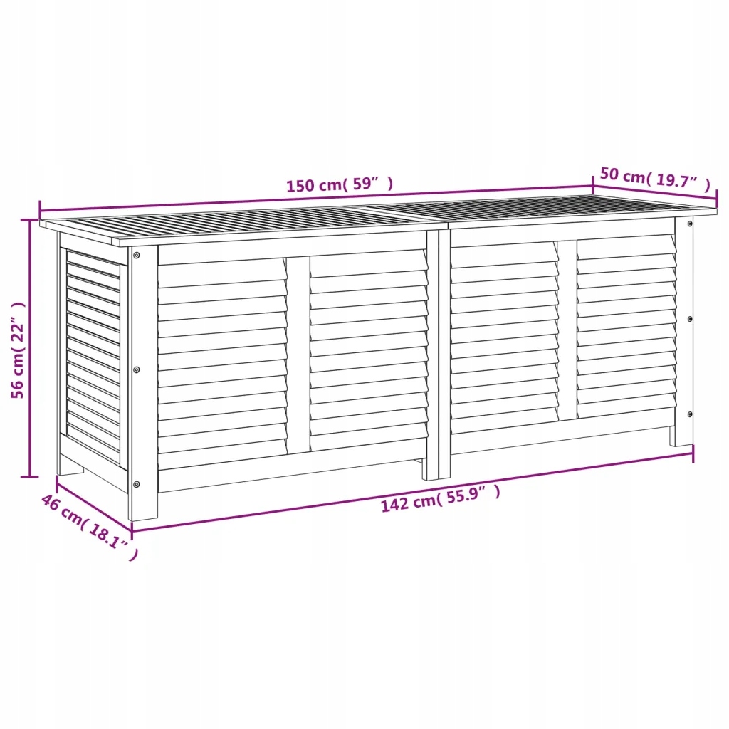 Akacji дерев'яна садова коробка передач 150x50x56 см, коричневий