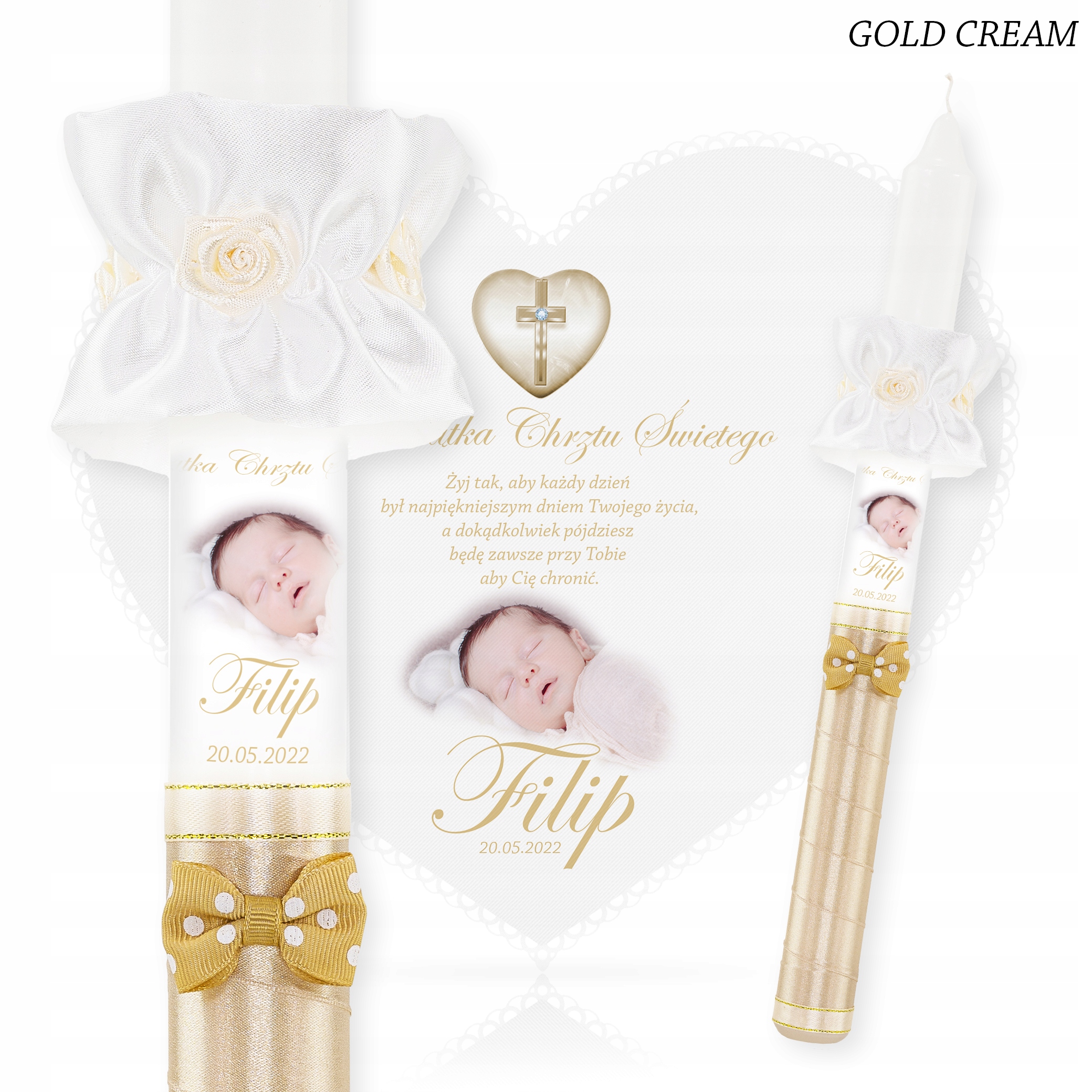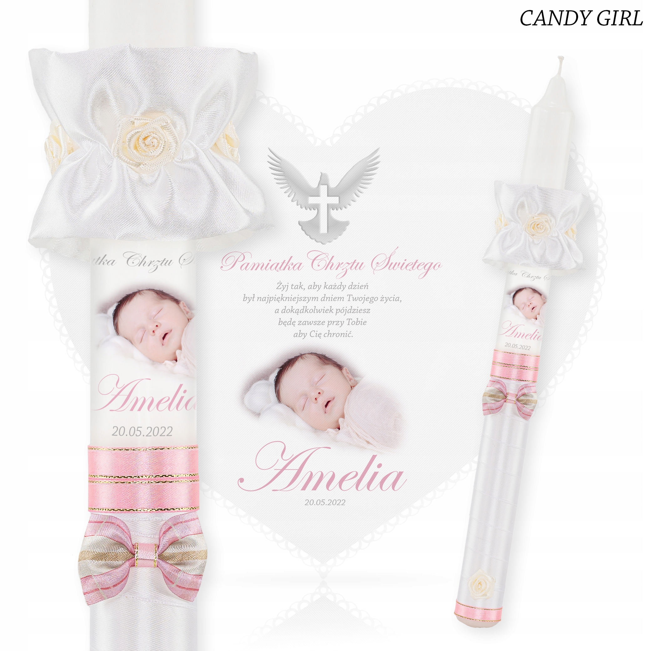 подарунок у вигляді білого одягу для хрещення та свічки є першими подарунками для дитини від хрещених пар. Прекрасна тема делікатного мереживного візерунка навколо одягу ідеально гармонізується з іменем та відданістю дитини.
